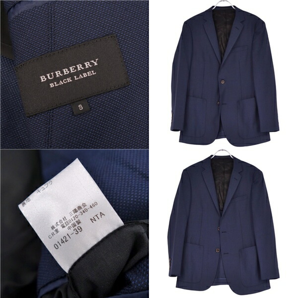 バーバリー ブラックレーベル BURBERRY BLACK LABEL ジャケット テーラード ウール 無地 アウター メンズ ネイビー サイズS