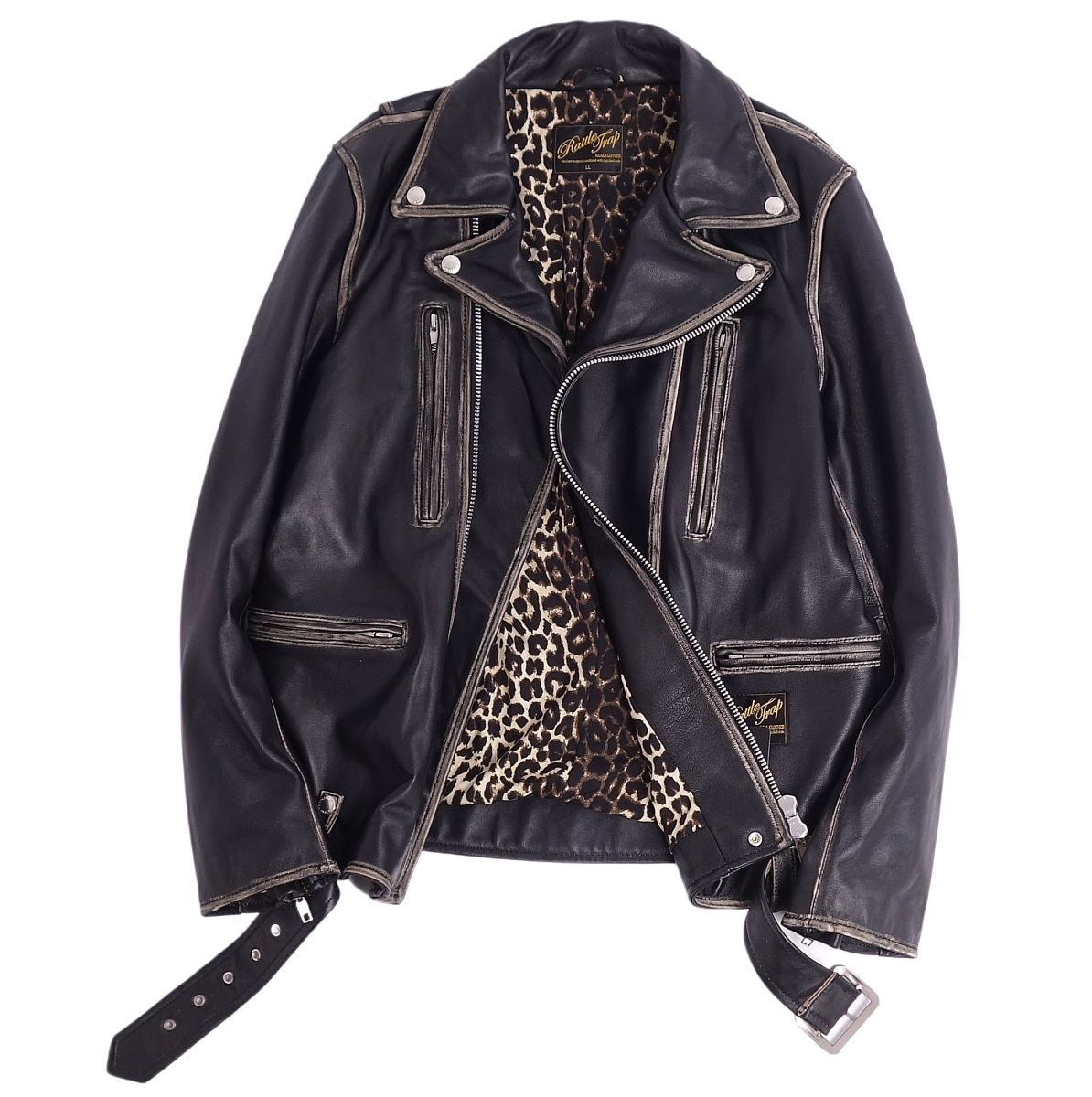 ラトルトラップ RattleTrap ジャケット レザージャケット ライダースジャケット ダブルブレスト ラムレザー アウター メンズ ブラック サイズLL