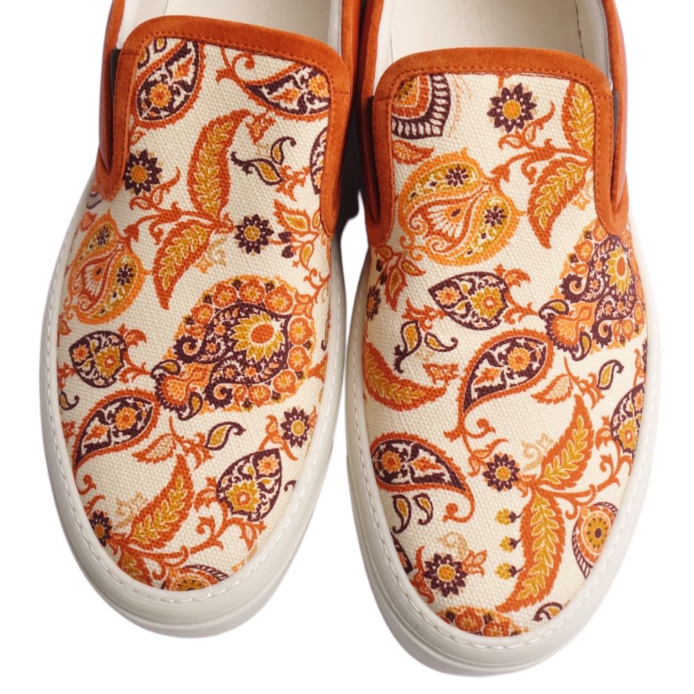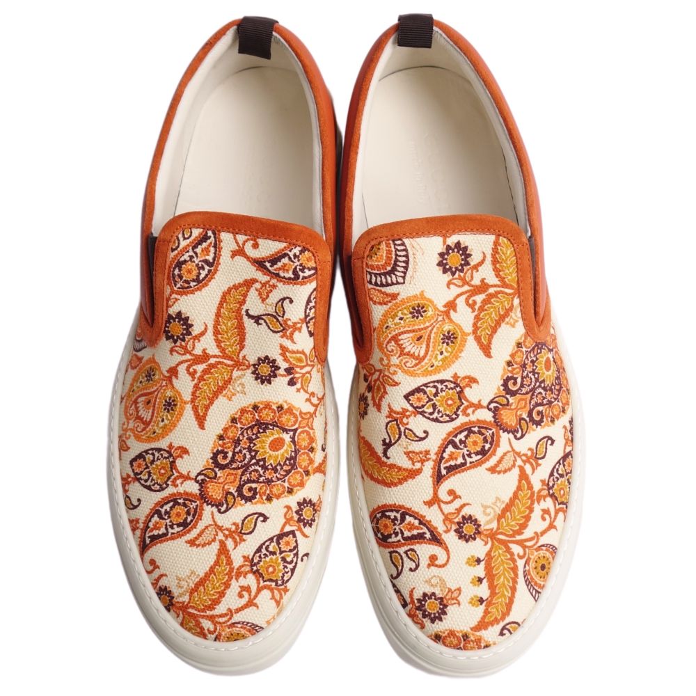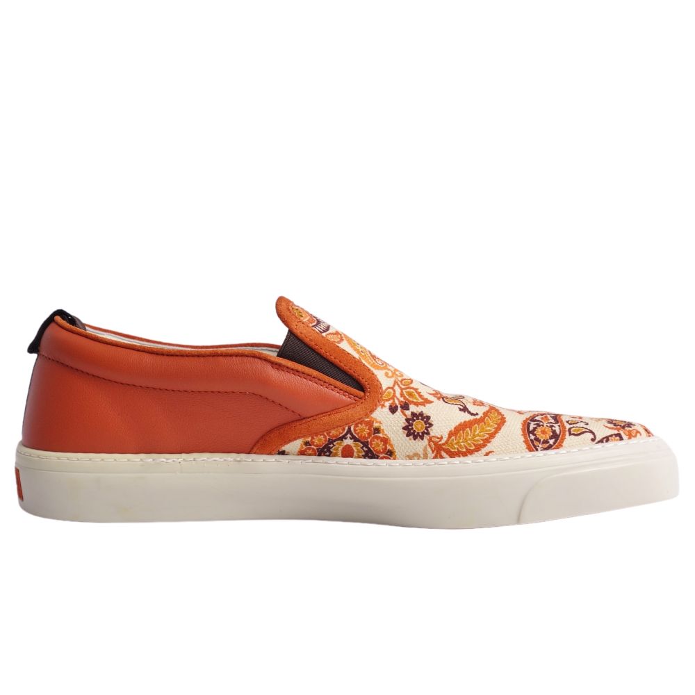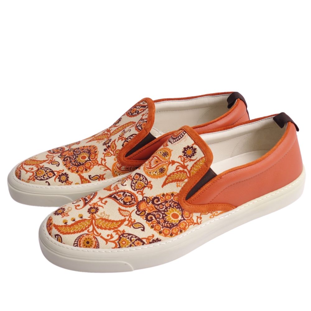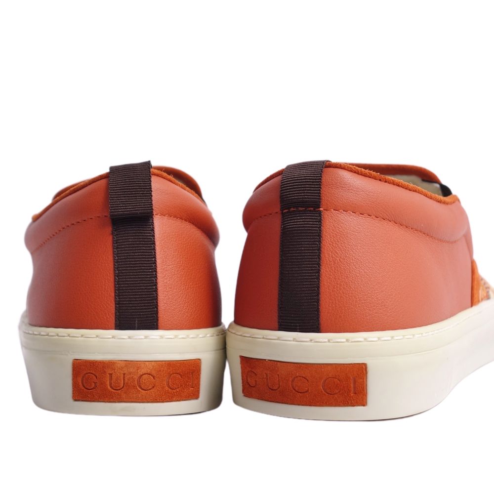 グッチ GUCCI スリッポン スニーカー ペイズリー キャンバス カーフレザー シューズ 靴 メンズ オレンジ/アイボリー サイズ9(28cm相当)