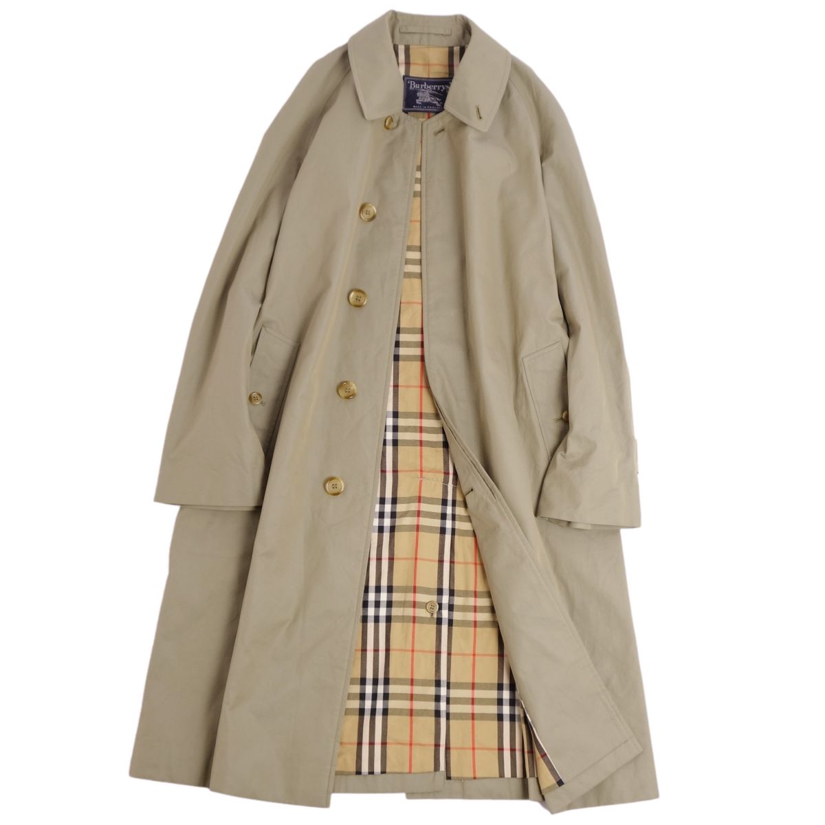 【美品】Vintage バーバリー Burberrys コート ステンカラーコート バルマカーンコート 裏チェック 英国製 アウター メンズ 46SHORT(S相当) ベージュ【中古】