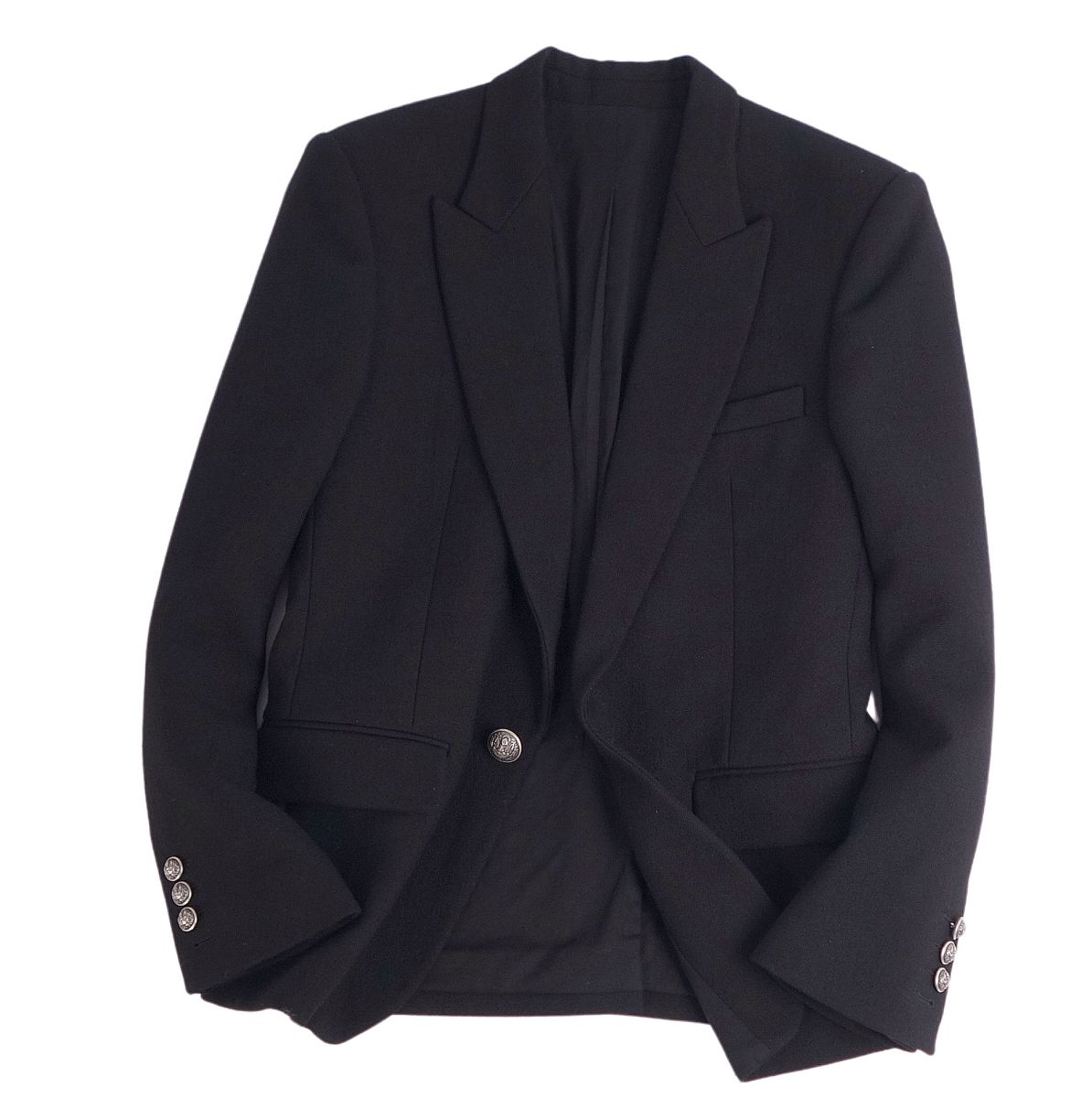 バルマン BALMAIN ジャケット テーラードジャケット シングル 無地 シングルボタン ウール アウター メンズ ブラック サイズ46(S相当)