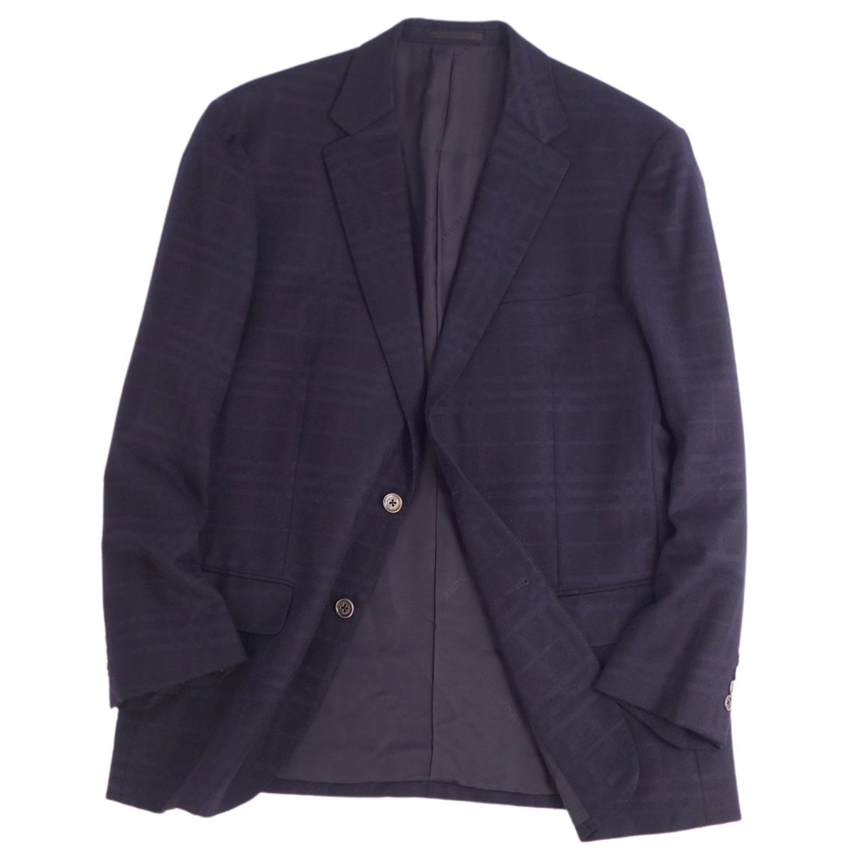 バーバリー ロンドン BURBERRY LONDON ジャケット テーラードジャケット シングル チェック柄 ウール アンゴラ アウター メンズ ネイビー サイズ102-96-175 BB6(L相当)