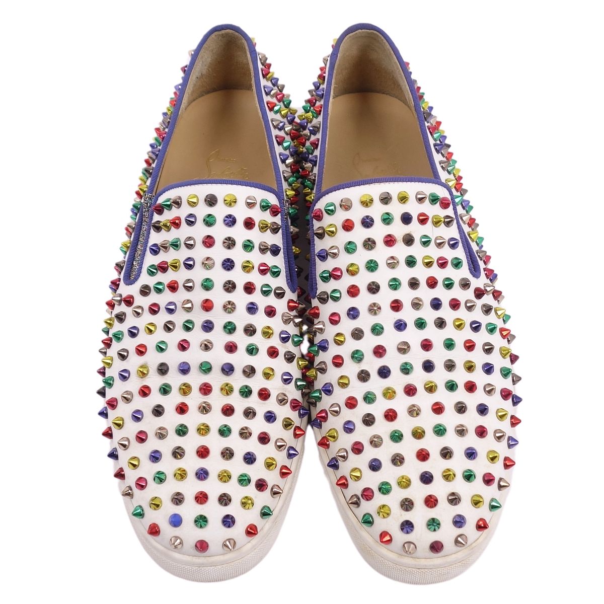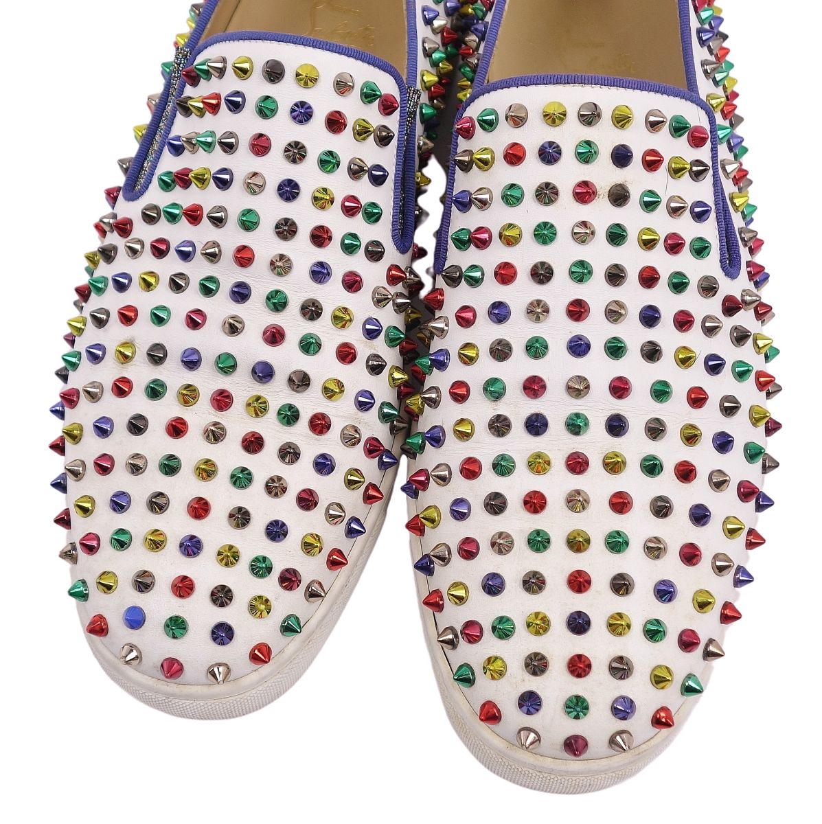 商品名 クリスチャンルブタン Christian Louboutin スニーカー Roller-Boat ローラーボート スリッポン スパイク メンズ レザー シューズ 45(30cm相当) ホワイト/マルチカラー【中古】