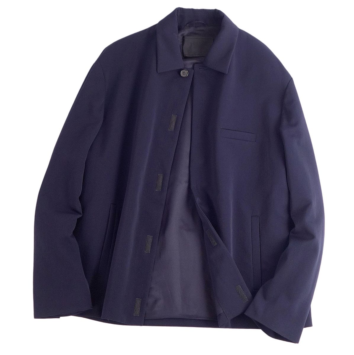 プラダ PRADA ジャケット ブルゾン ステンカラー マジックテープ 無地 ウール アウター メンズ ネイビー サイズ52(L相当)