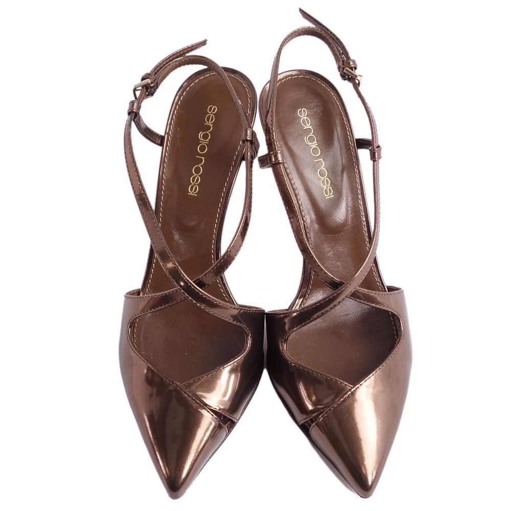 セルジオロッシ SERGIO ROSSI サンダル バックストラップ エナメルレザー ヒール シューズ 靴 レディース ブラウン サイズ34(21cm相当)