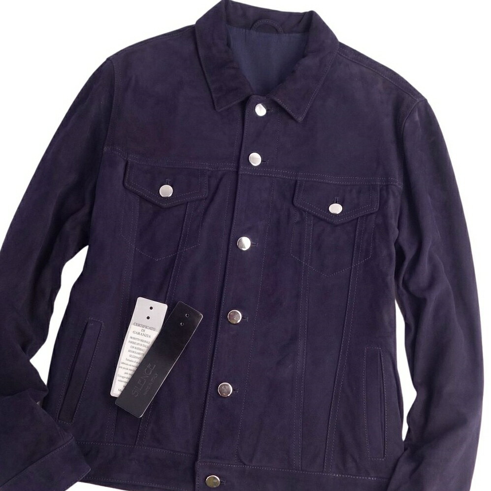 サイレンス SILENCE ジャケット ゴートスウェード トラッカージャケット メンズ レザー アウター ネイビー サイズ44(S相当)