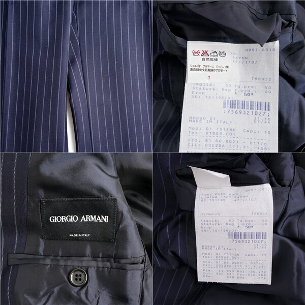 商品名 ジョルジオアルマーニ GIORGIO ARMANI セットアップ スーツ ジャケット スラックス ストライプ柄 メンズ 50(M相当) ネイビー【中古】