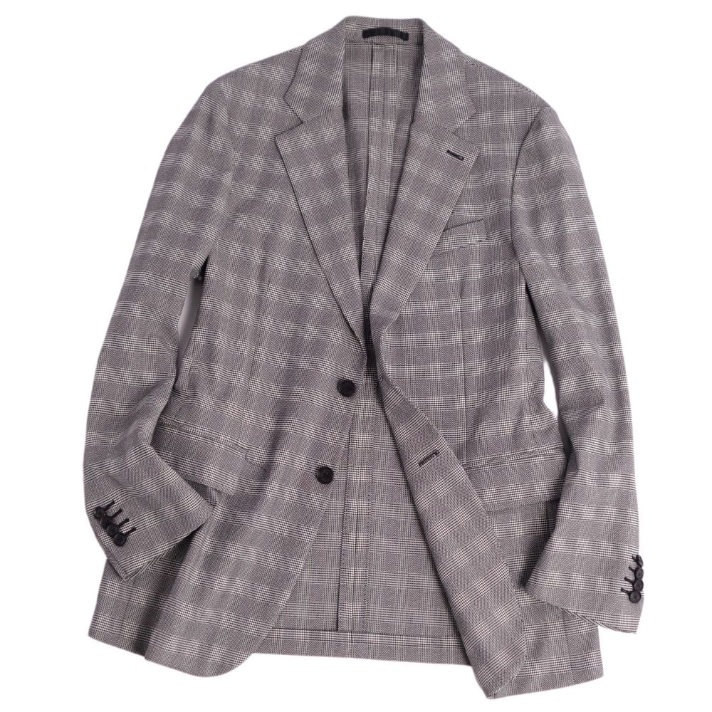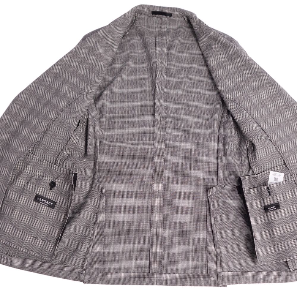 ヴェルサーチ VERSACE ジャケット テーラード チェック ウール 芯なし アウター メンズ イタリア製 グレー サイズ48(M相当)