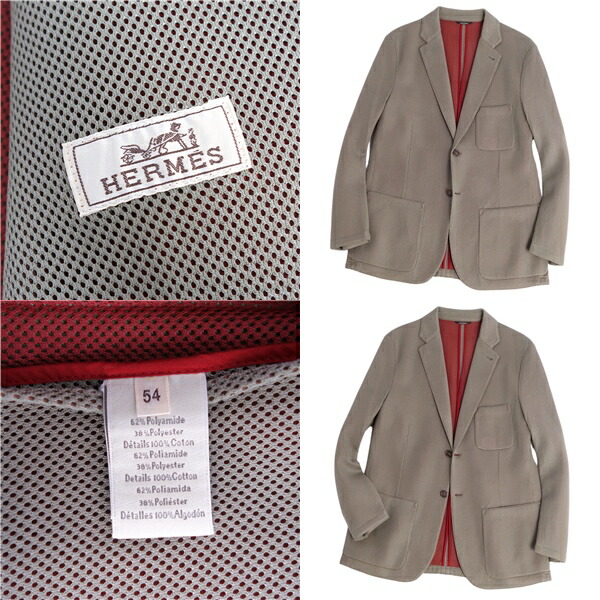 エルメス HERMES ジャケット テーラードジャケット メッシュ アウター メンズ フランス製 カーキ サイズ54(XL相当)