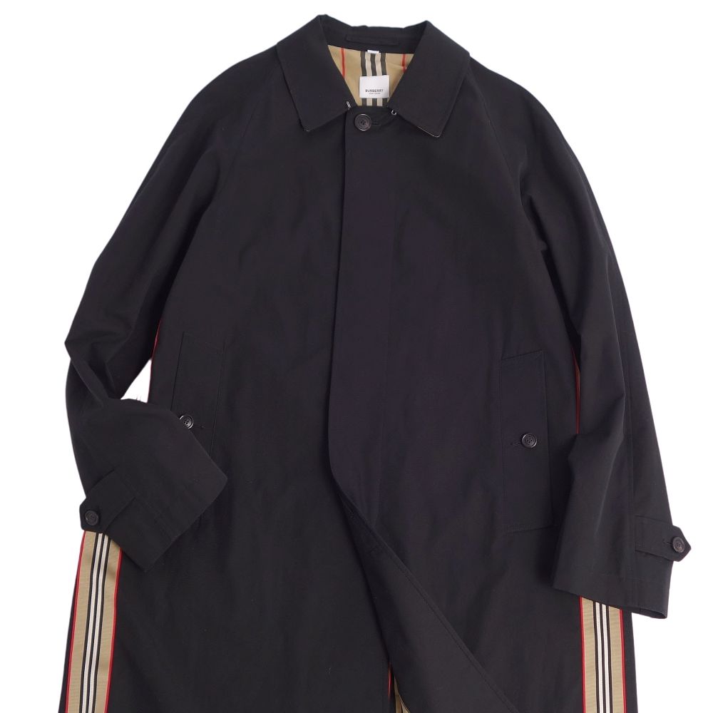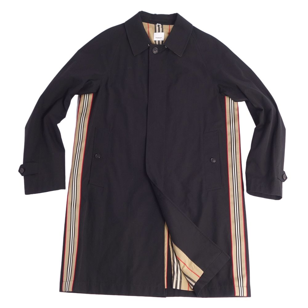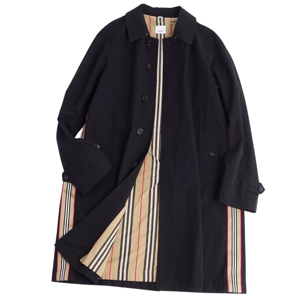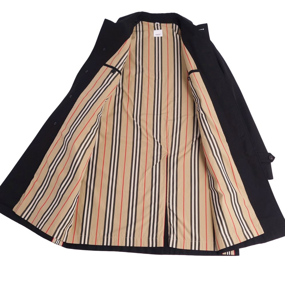 バーバリー BURBERRY コート ステンカラーコート バルマカーンコート ストライプ コットン アウター メンズ ブラック サイズ52(L相当)