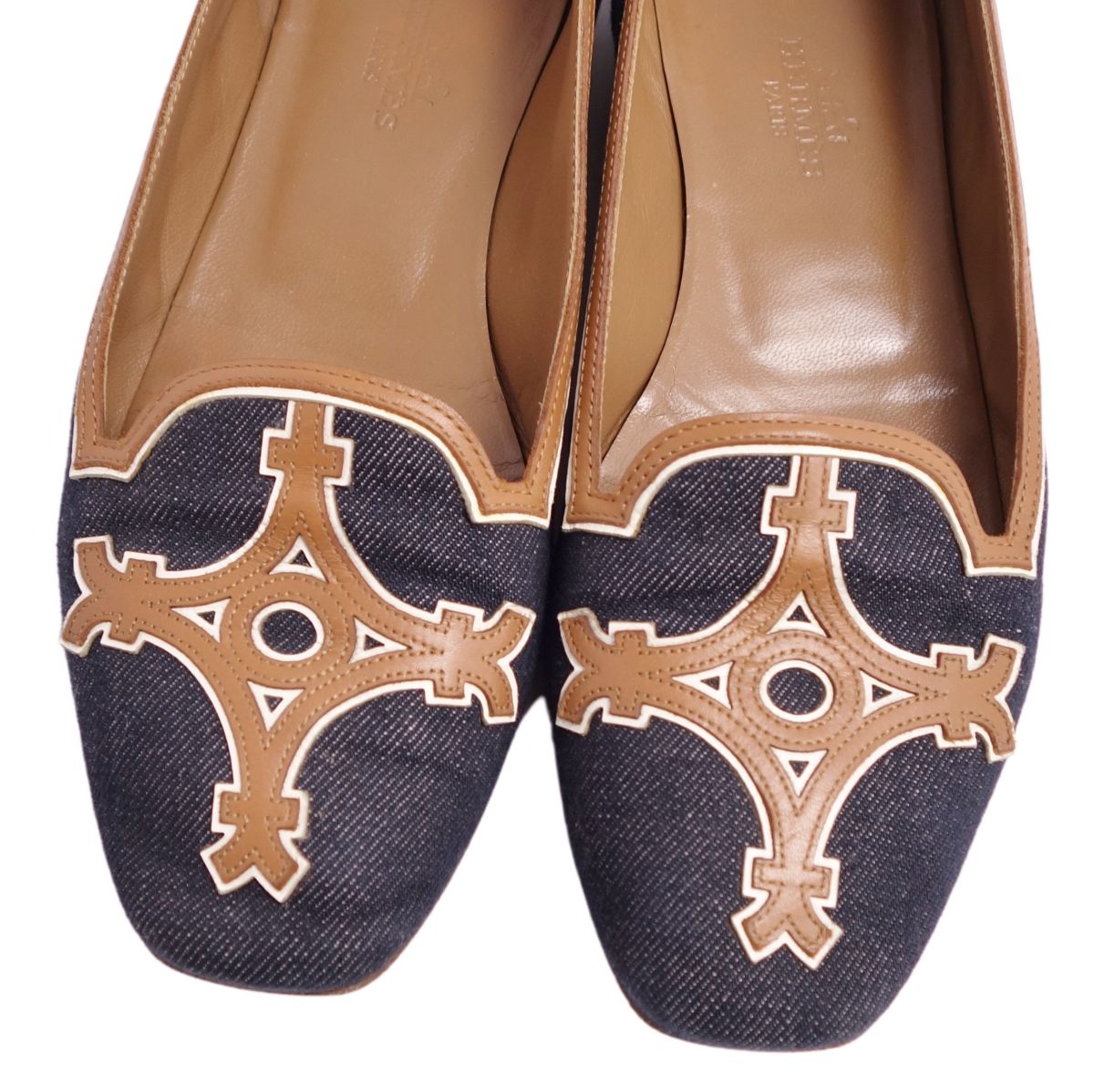 エルメス HERMES パンプス フラットパンプス デニム カーフレザー シューズ 靴 レディース インディゴブルー/ブラウン サイズ35.5(22.5cm相当)