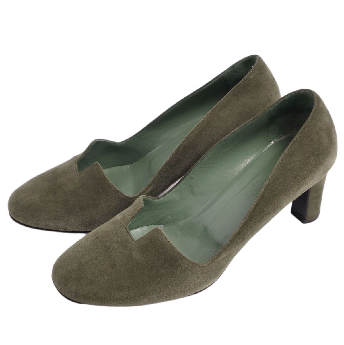 エルメス HERMES パンプス スウェードレザー ヒール シューズ 靴 レディース イタリア製 カーキ サイズ37.5(24.5cm相当)
