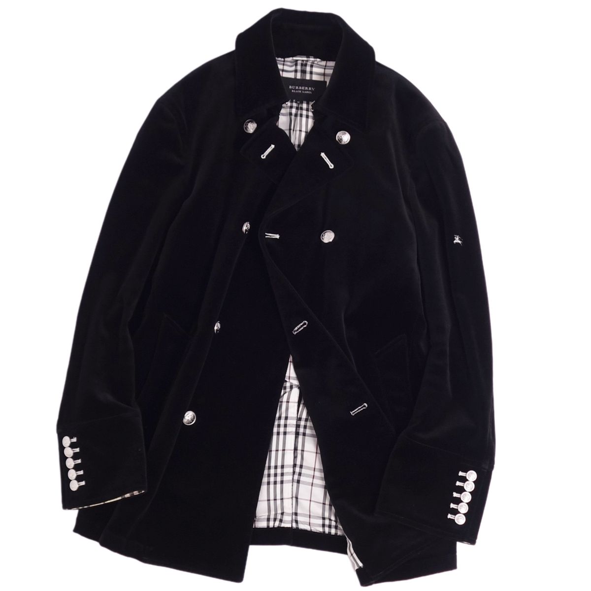 バーバリー ブラックレーベル BURBERRY BLACK LABEL ジャケット ナポレオンジャケット ダブルブレスト ベロア アウター メンズ ブラック サイズM