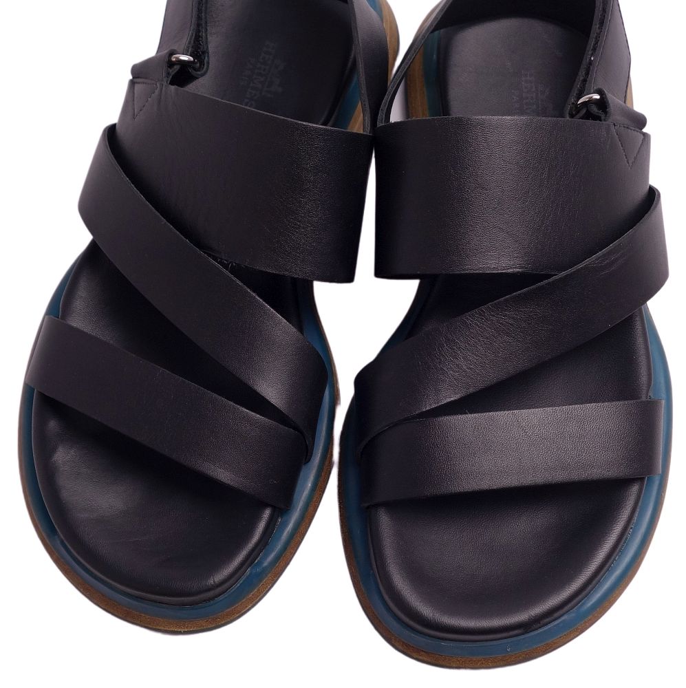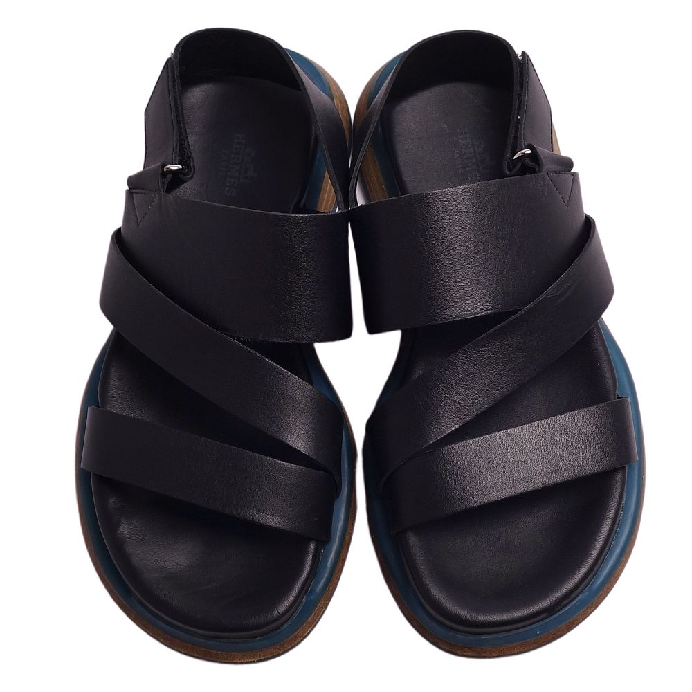 エルメス HERMES サンダル Athenes アテネ カーフレザー シューズ 靴 メンズ イタリア製 ブラック サイズ39(24.5cm相当)