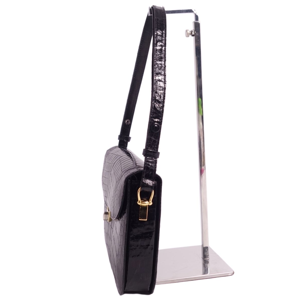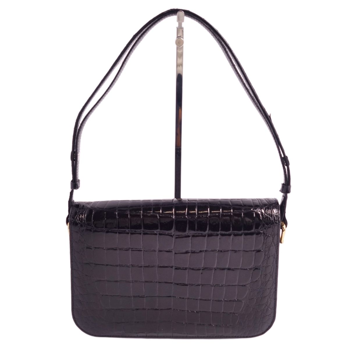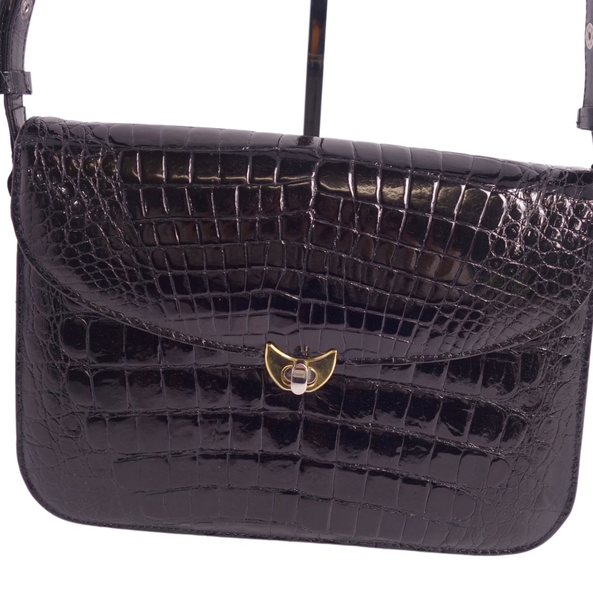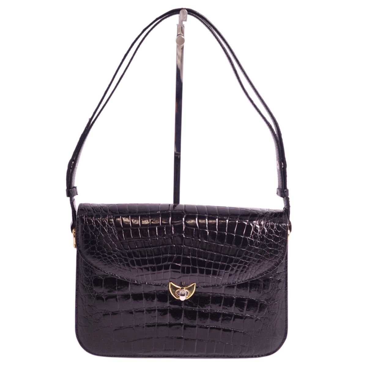 商品名 クロコダイル CROCODILE バッグ ショルダーバッグ シャイニークロコ ワニ革 ターンロック カバン レディース ブラック【中古】