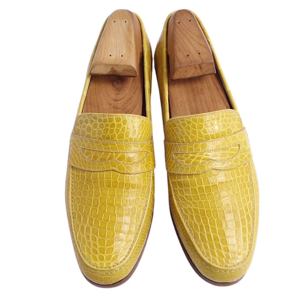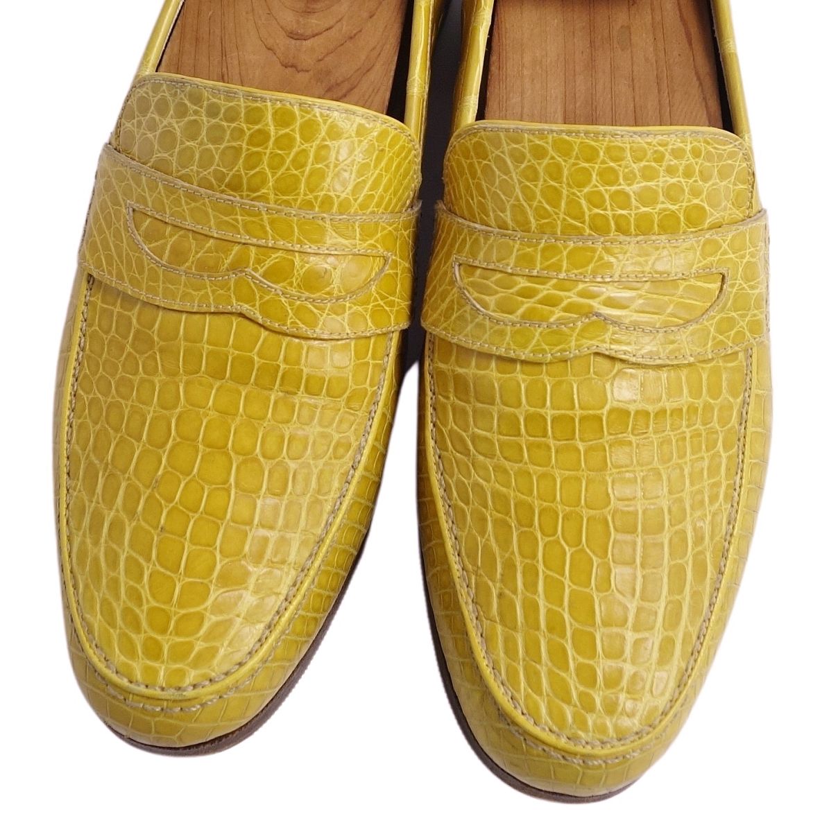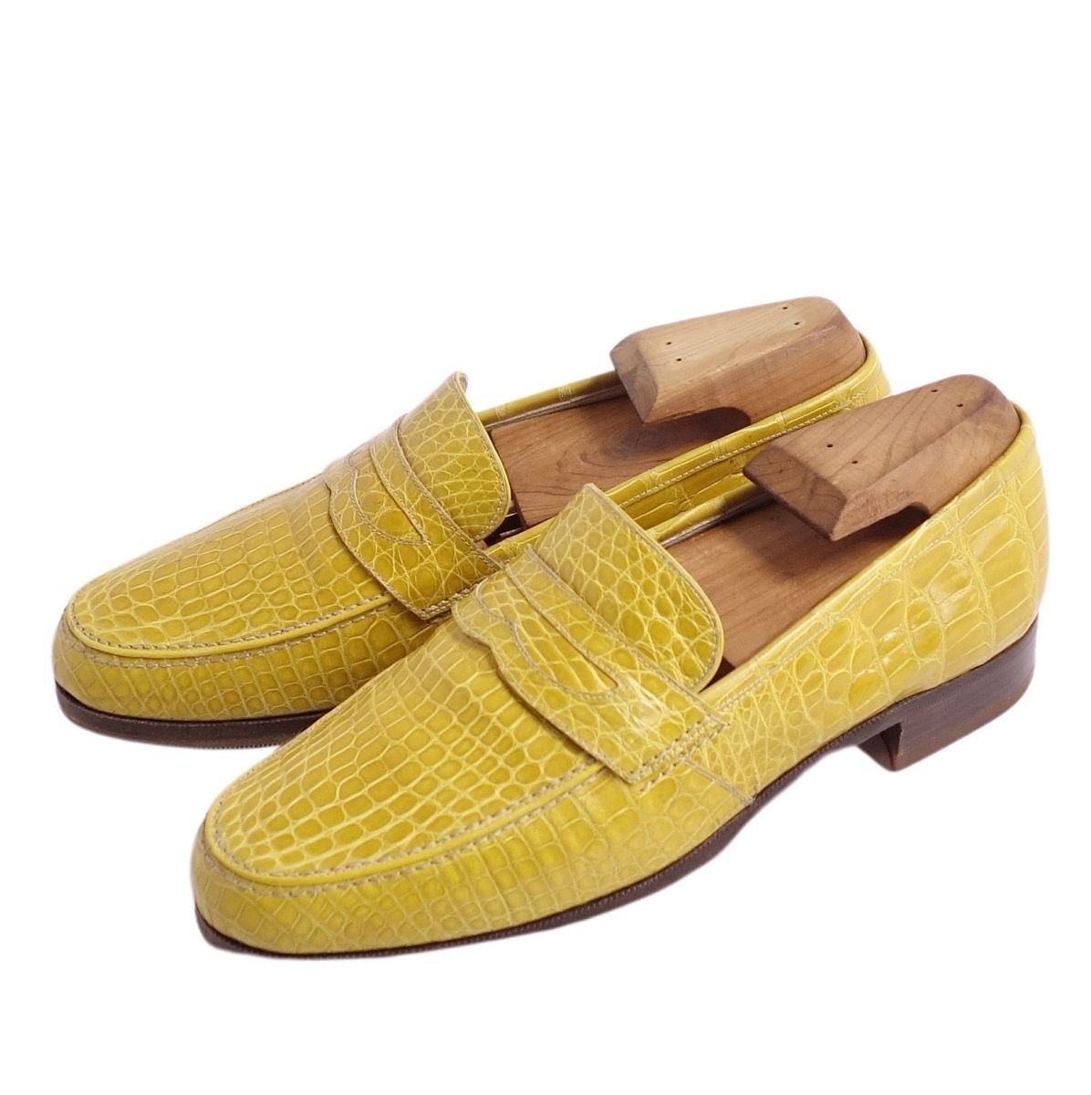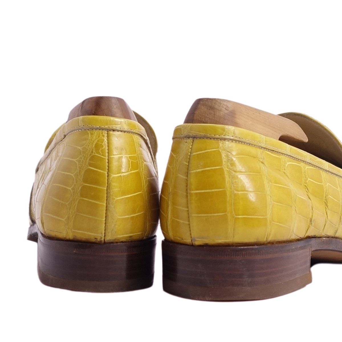 商品名 【美品】アルティオリ ARTIOLI ローファー モカシン コインローファー クロコダイル シューズ メンズ 24cm相当(表記無し) イエローグリーン【中古】