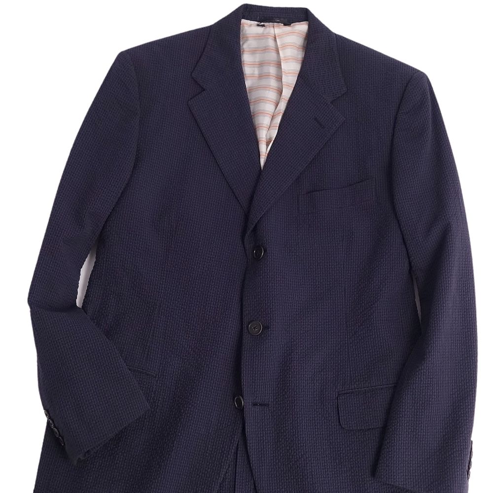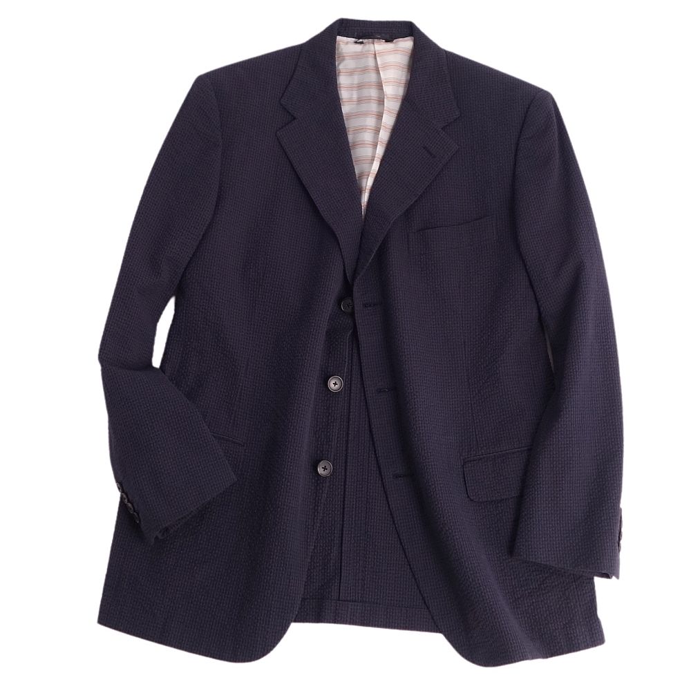 エルメス HERMES ジャケット テーラード シアサッカー コットン ストライプ アウター メンズ イタリア製 ネイビー サイズ52(L相当)