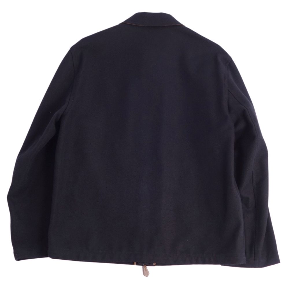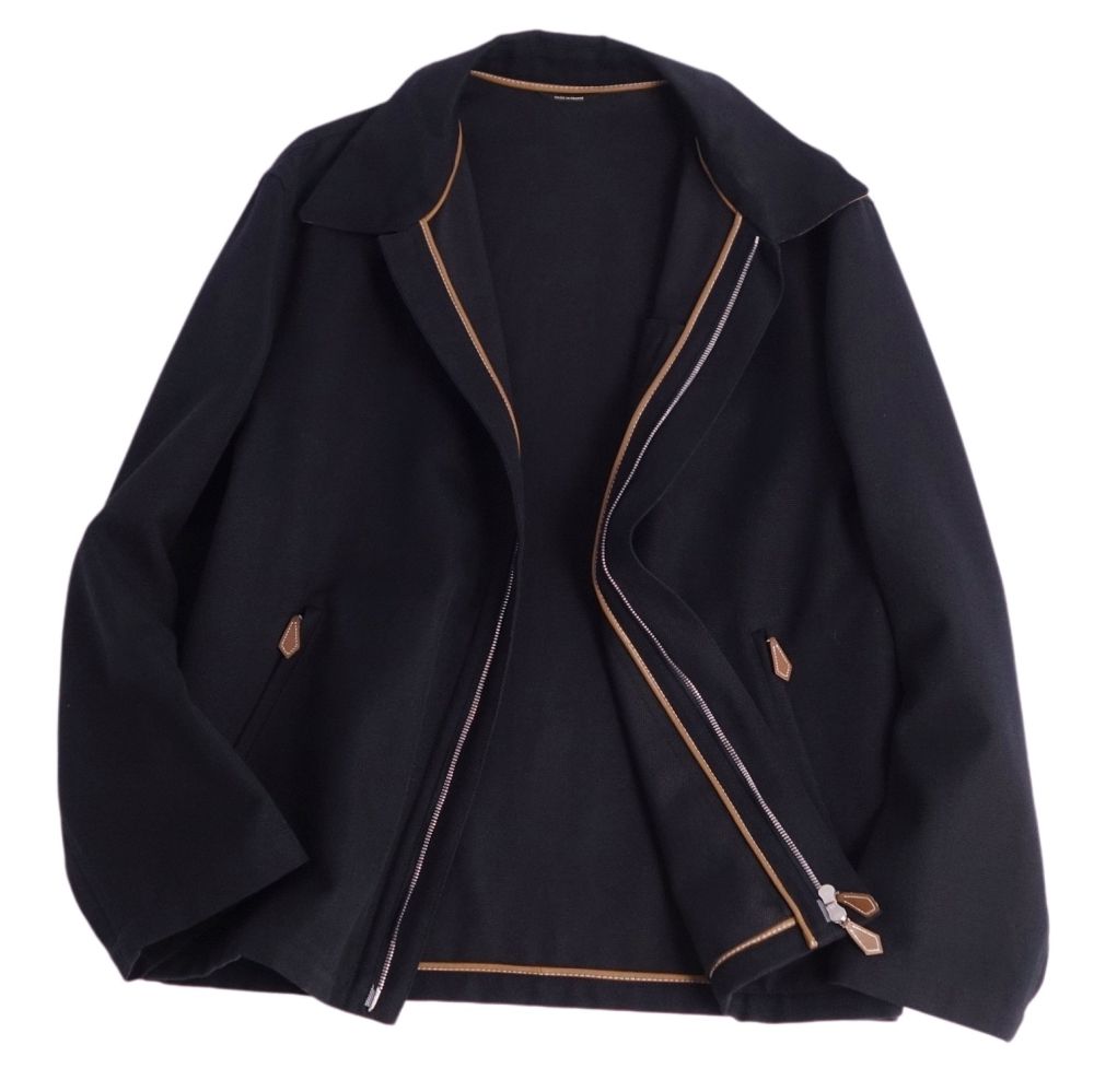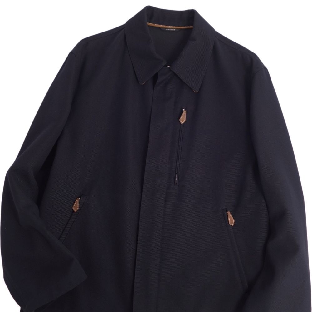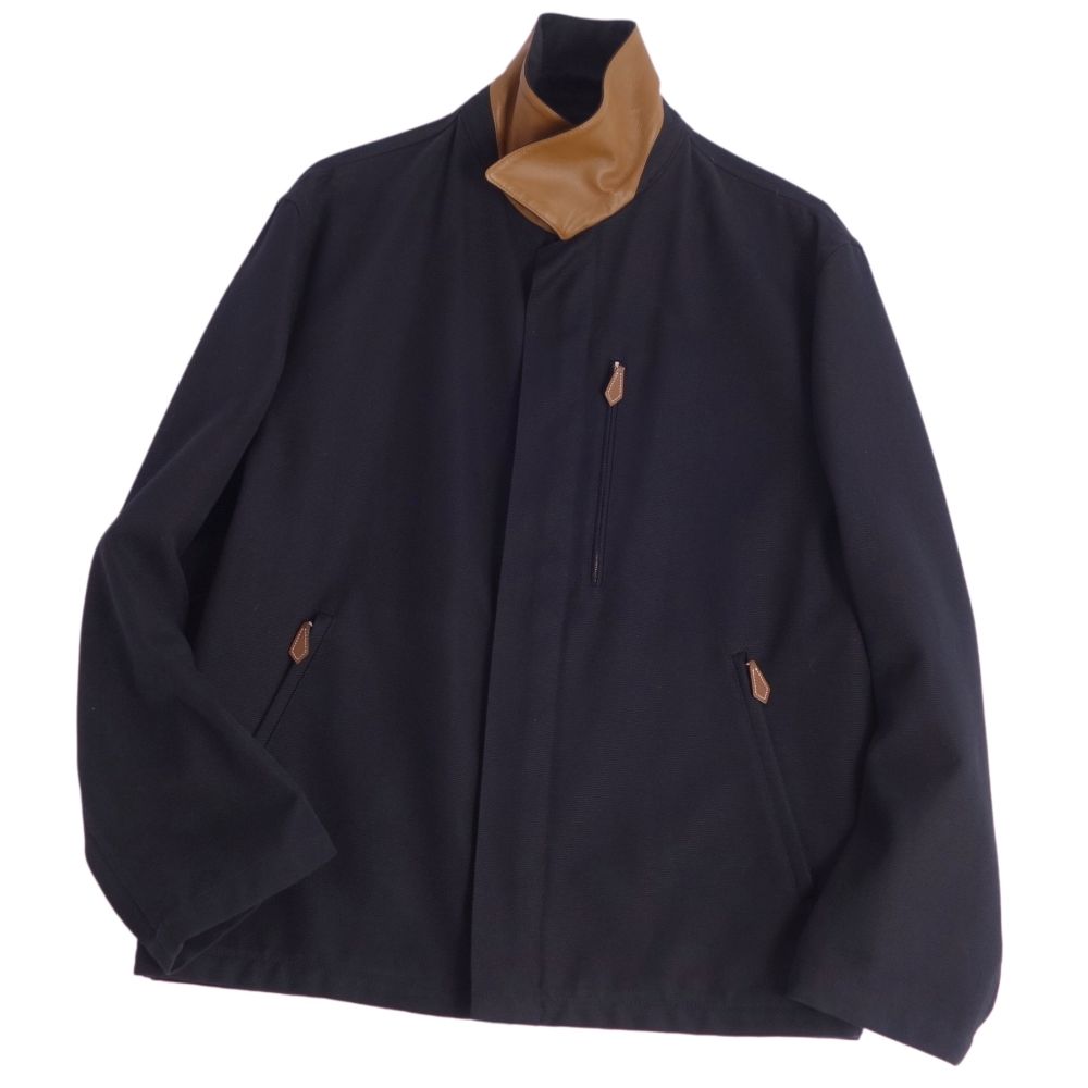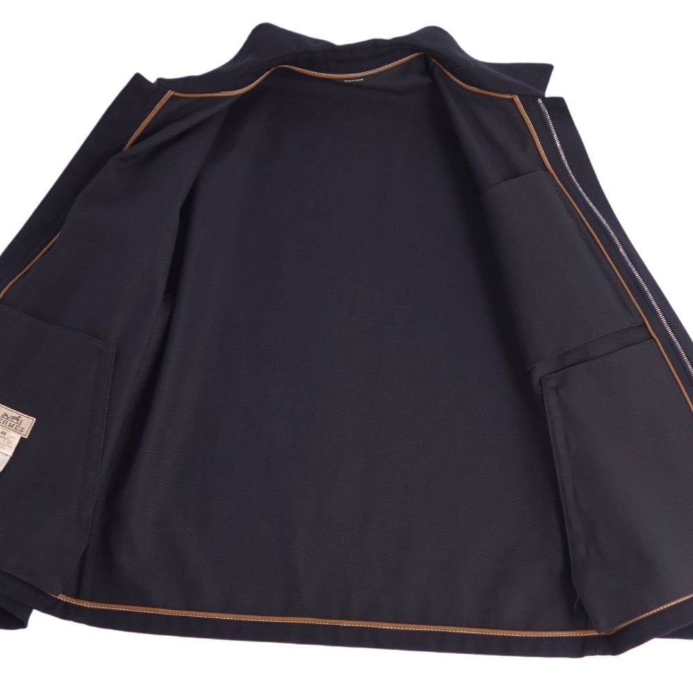 エルメス HERMES ジャケット ジップアップ コットン ラムレザー アウター メンズ フランス製 ネイビー サイズ48(M相当)