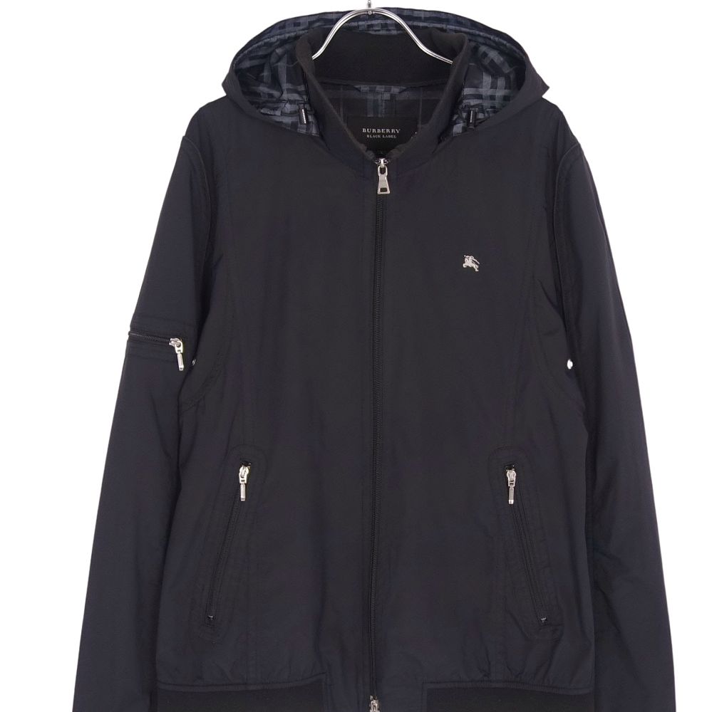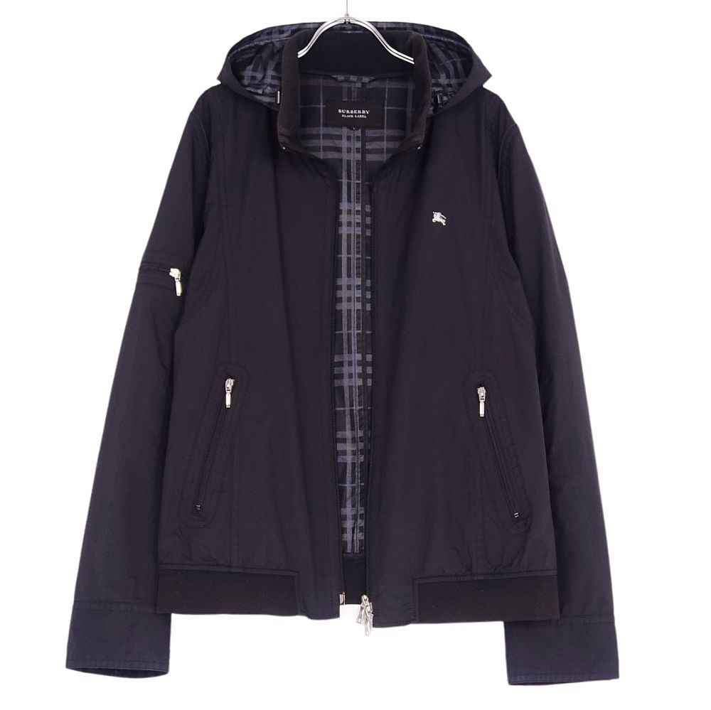 バーバリー ブラックレーベル BURBERRY BLACK LABEL ジャケット ブルゾン フード付き ジップアップ ナイロン アウター メンズ ブラック サイズL