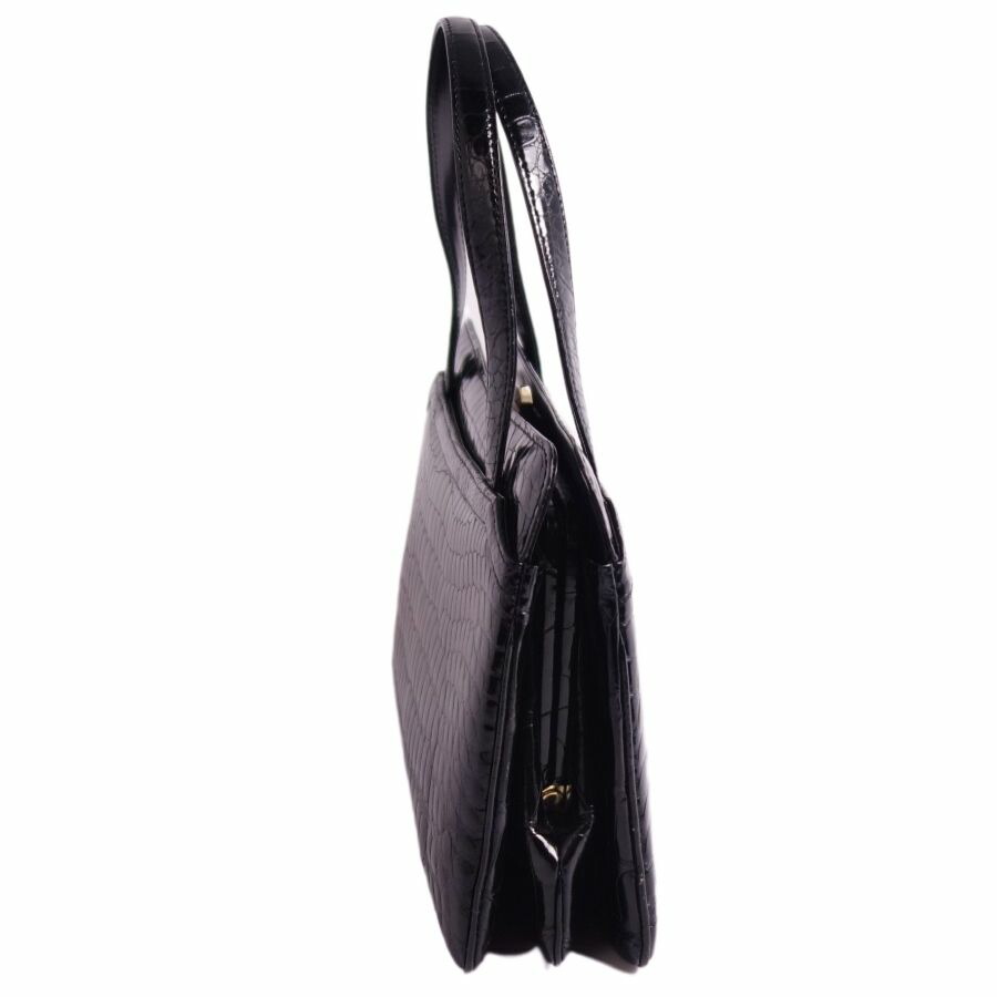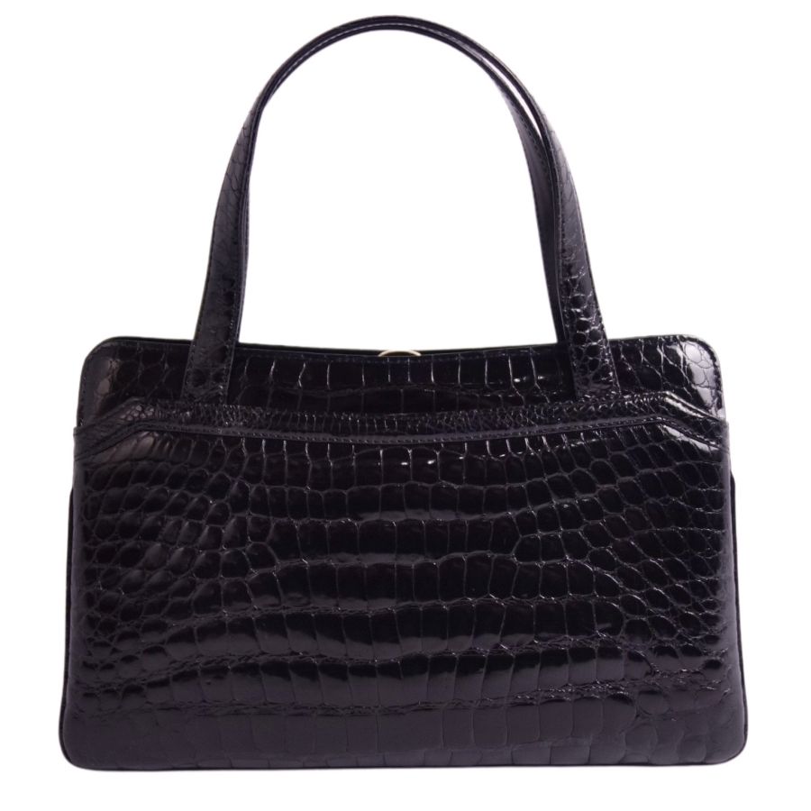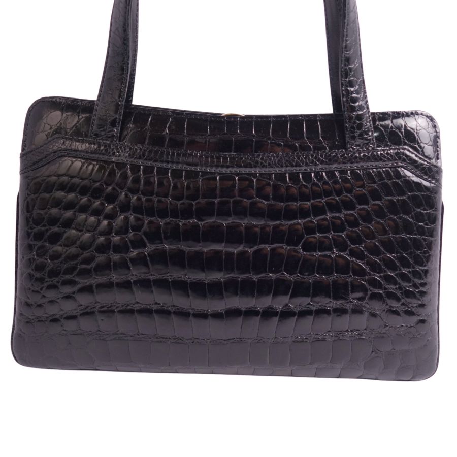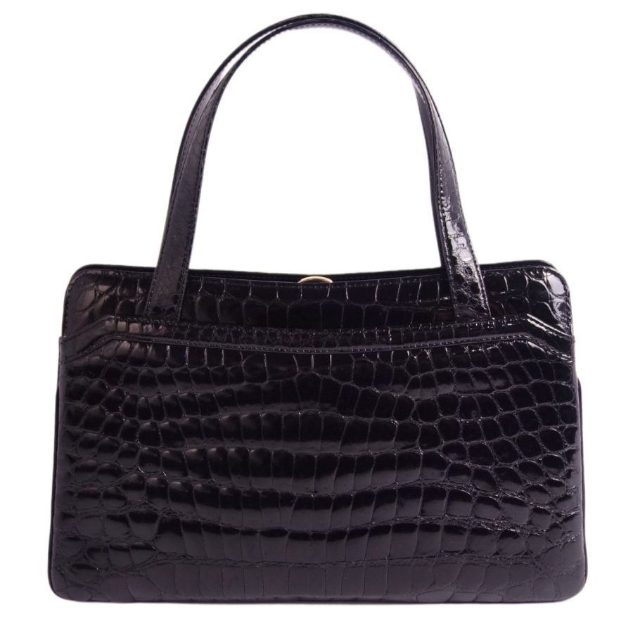 【美品】クロコダイル CROCODILE バッグ ハンドバッグ シャイニークロコ ワニ革 本革 鞄 カバン レディース ブラック【中古】