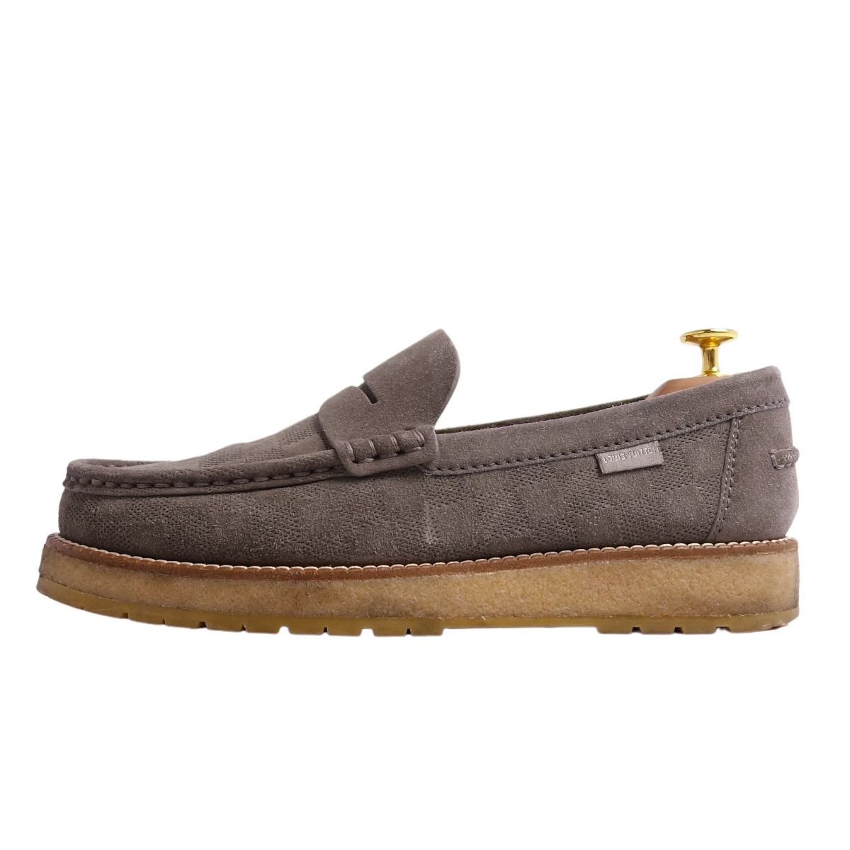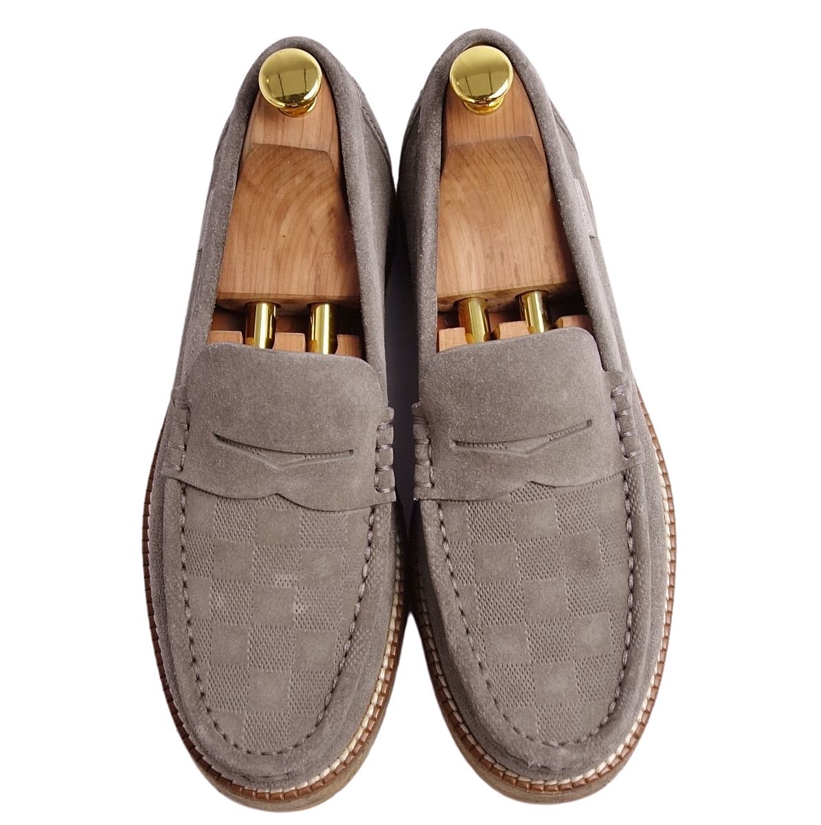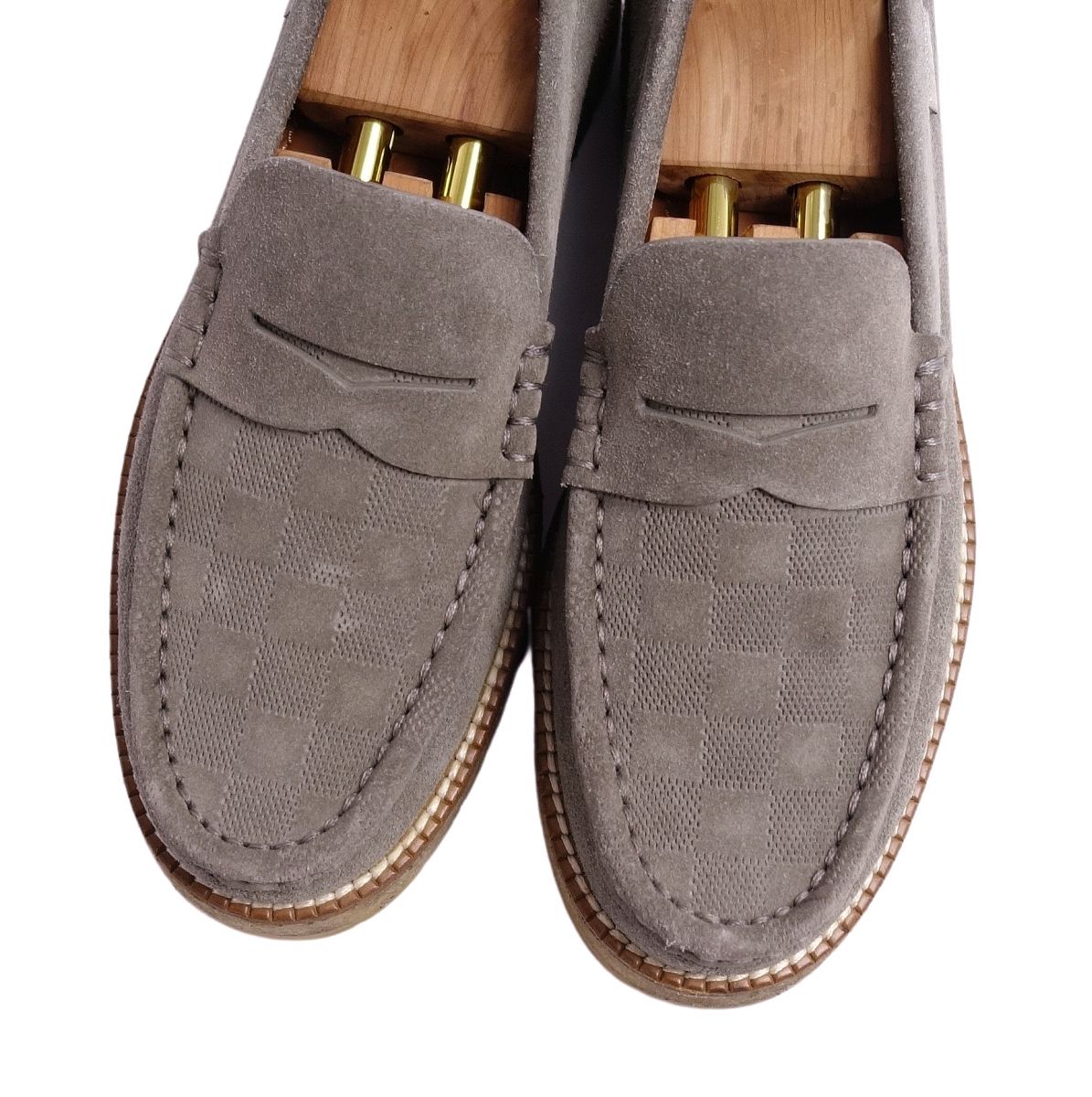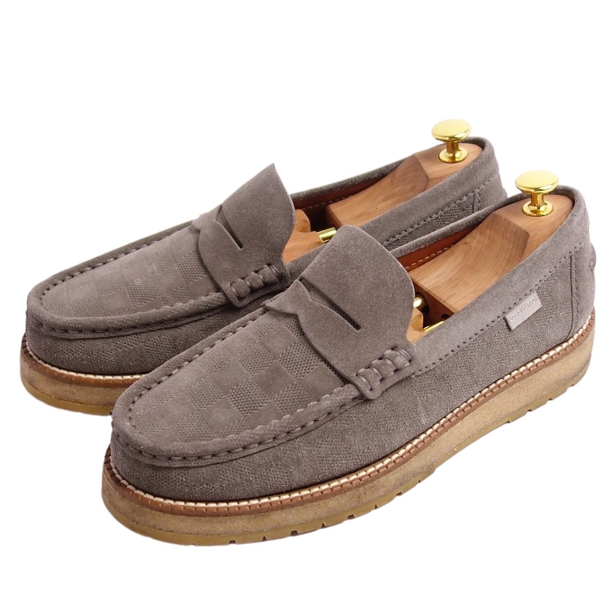 商品名 ルイヴィトン LOUIS VUITTON ローファー モカシン コインローファー ダミエ柄 スウェードレザー シューズ メンズ 6.5(25.5cm相当) グレー【中古】