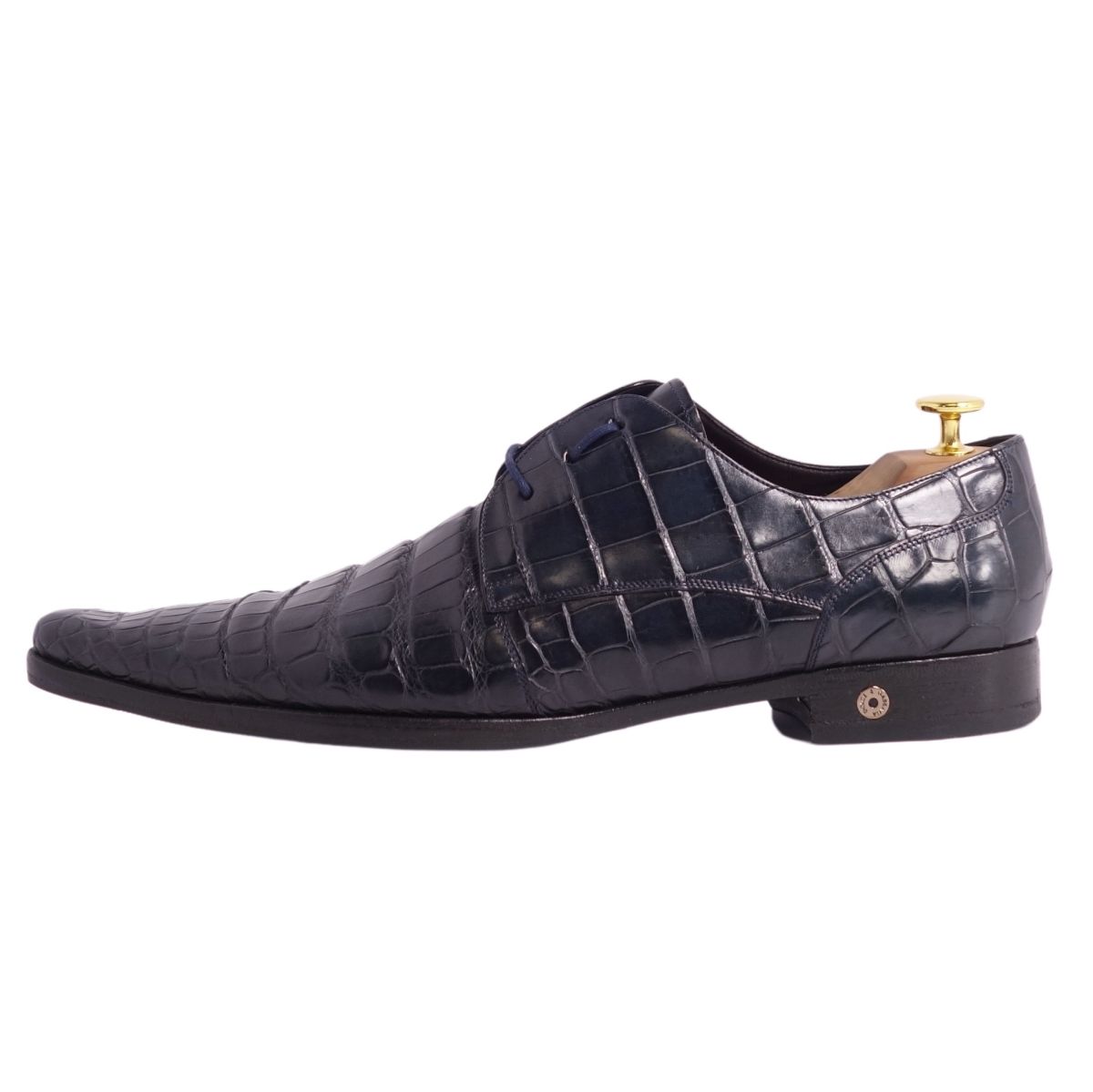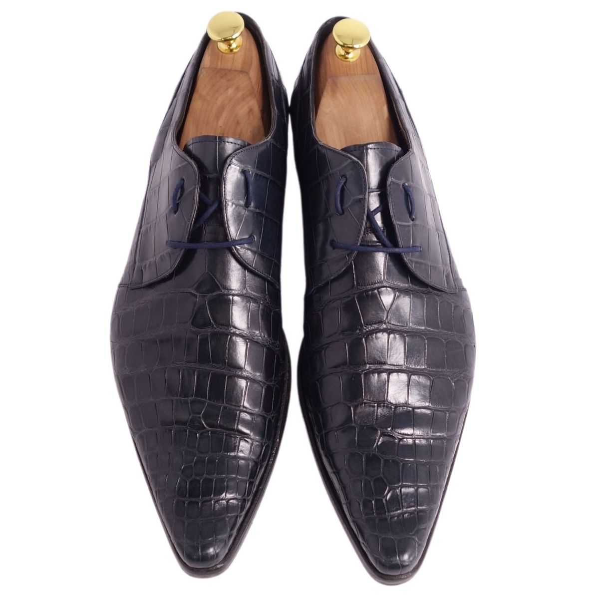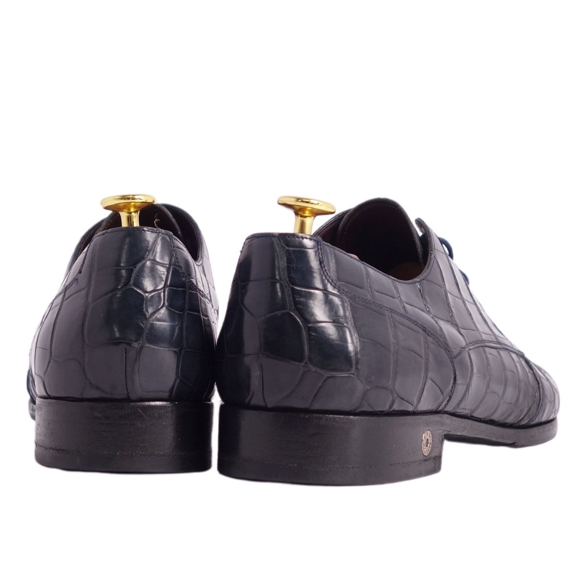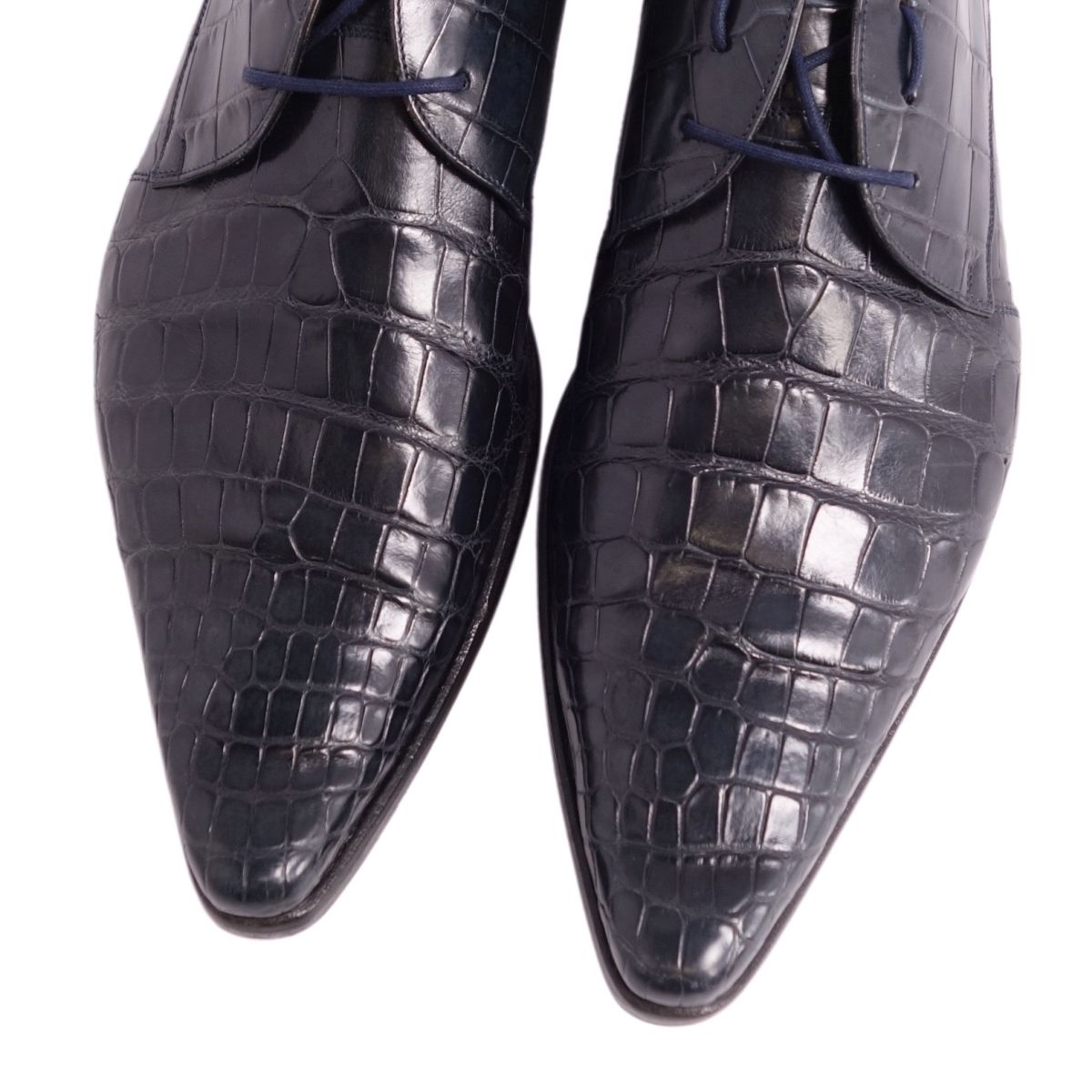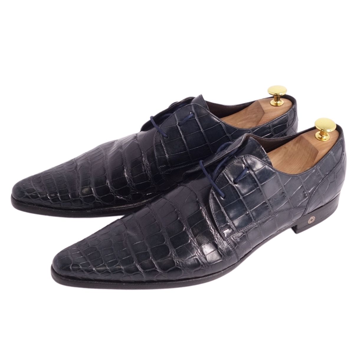 ドルチェ&ガッバーナ DOLCE&GABBANA レザーシューズ ダービーシューズ マットクロコ ワニ革 革靴 メンズ ネイビー サイズ9(28cm相当)