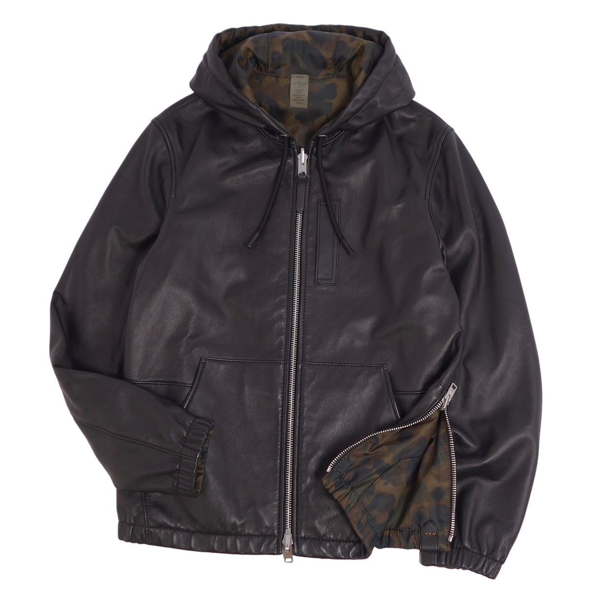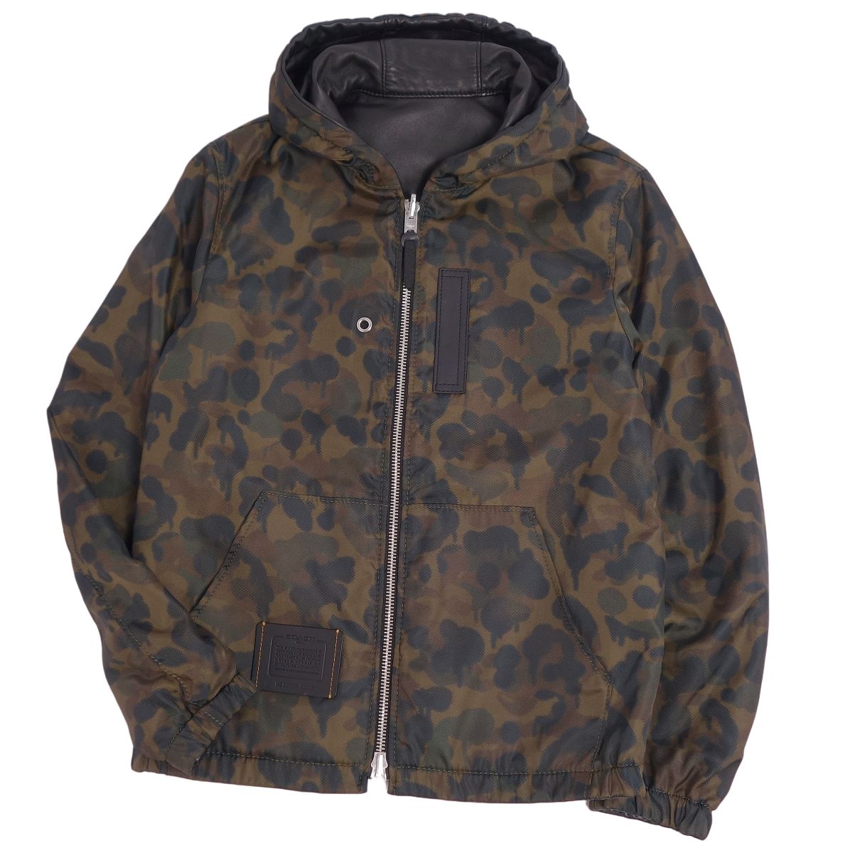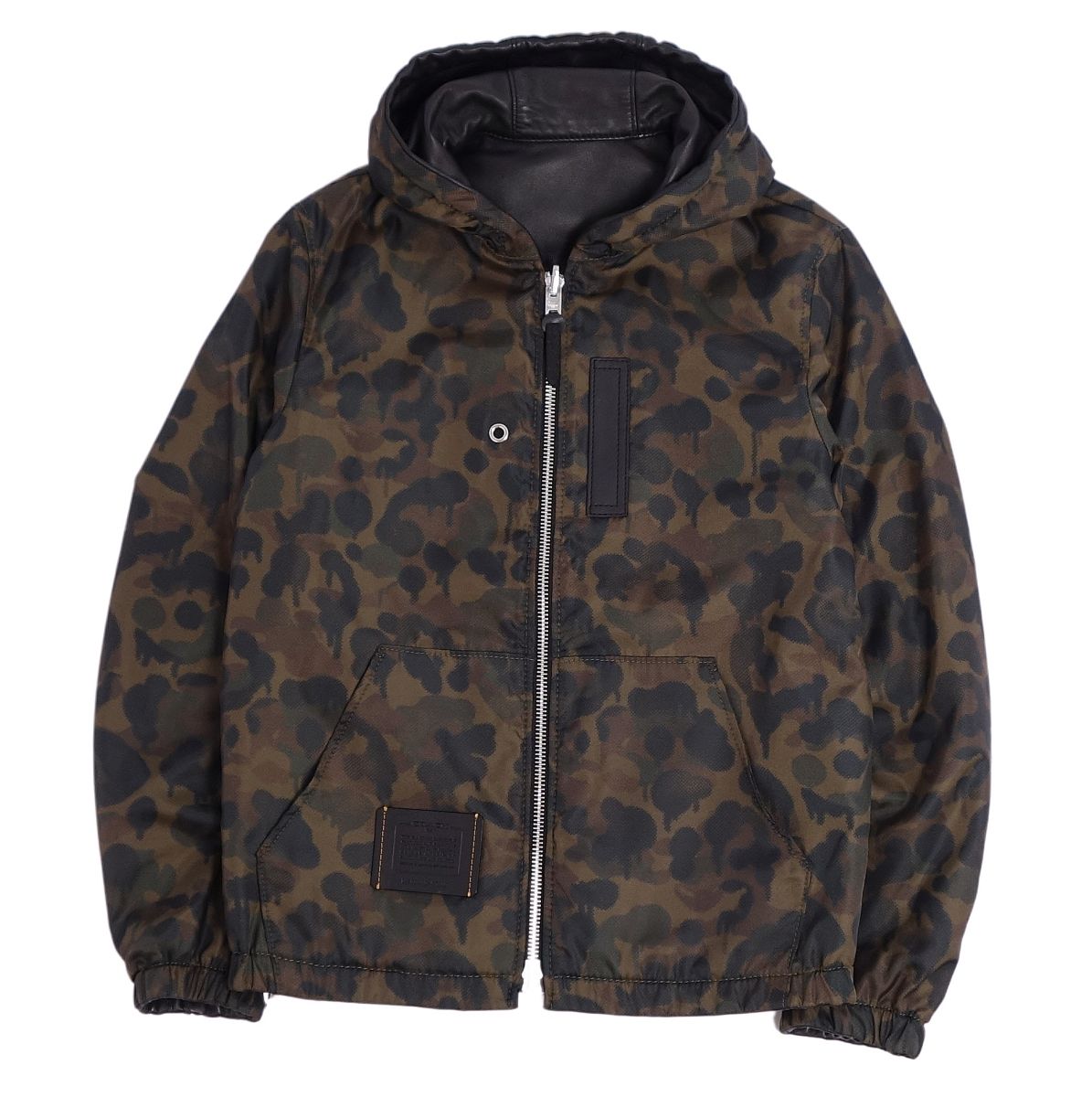 コーチ COACH ジャケット レザージャケット リバーシブル 迷彩柄 ナイロン フーディー アウター メンズ ブラック/カーキ サイズ44(XS相当)