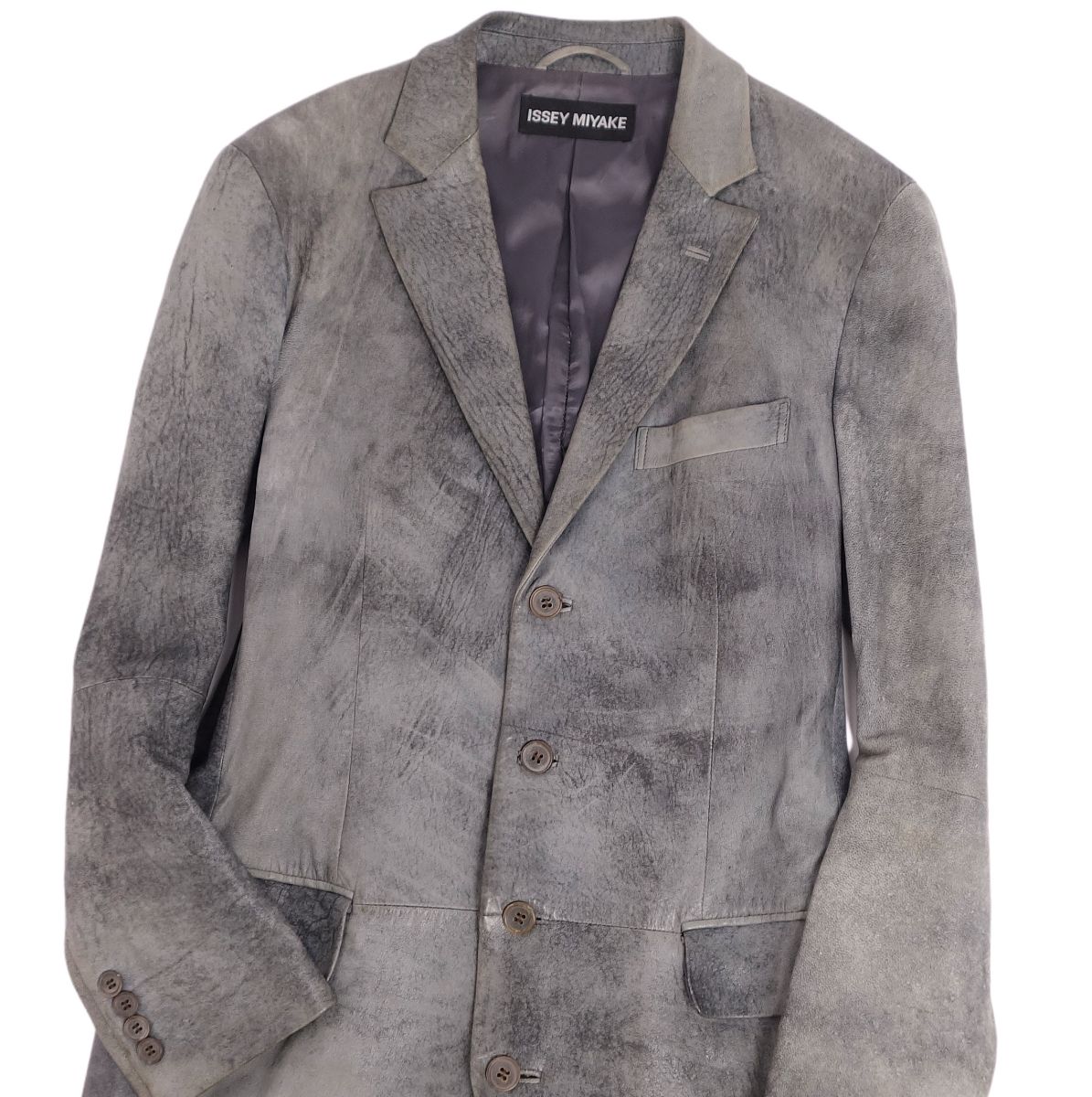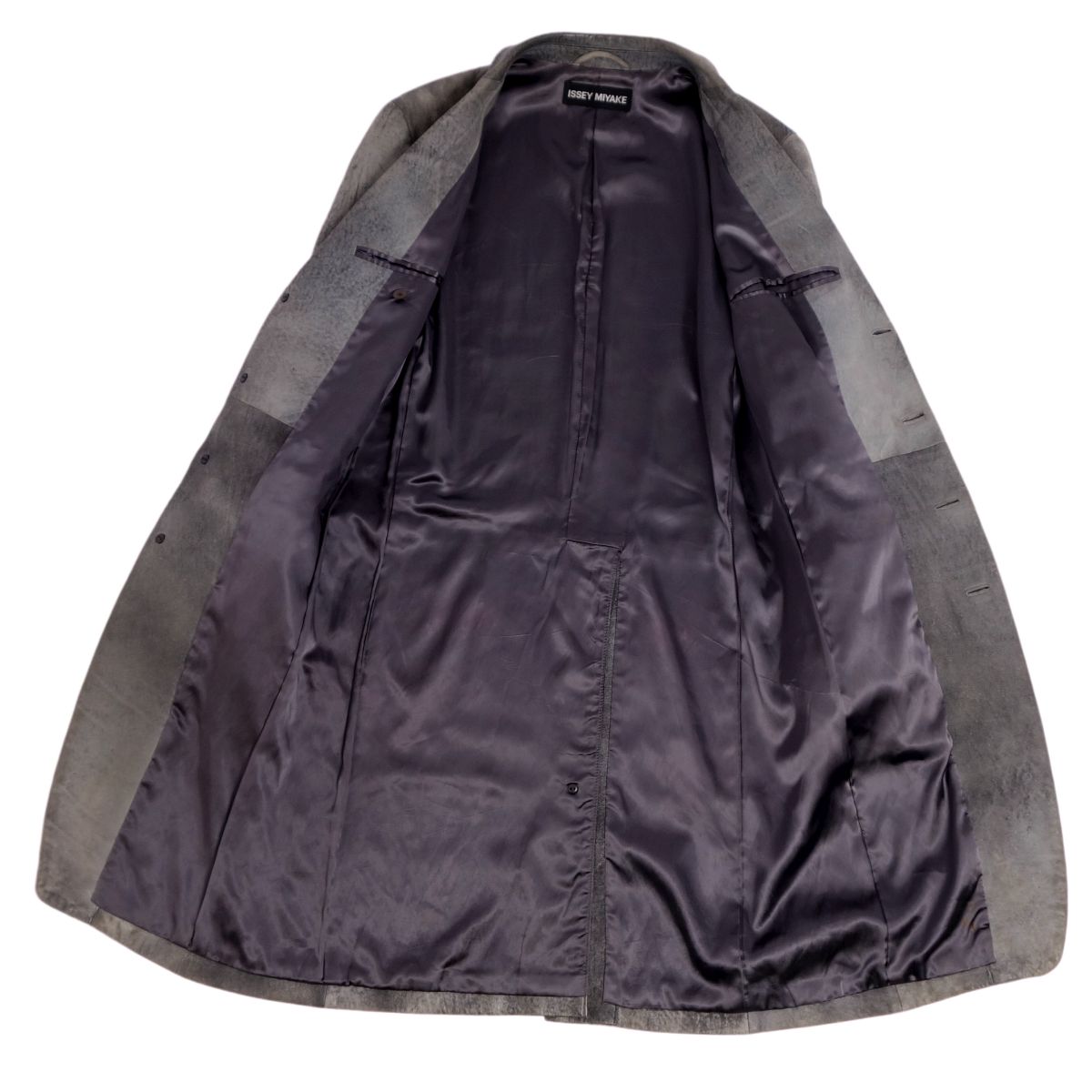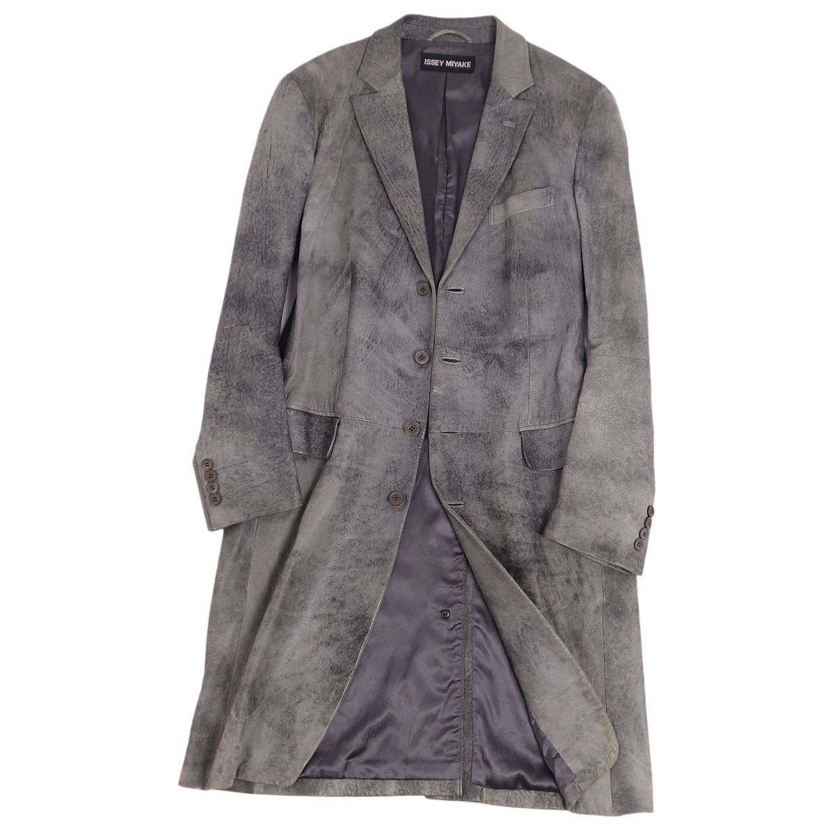 イッセイミヤケ ISSEY MIYAKE コート ロングコート チェスターコート ラムレザー アウター メンズ グレー サイズ1(S相当)