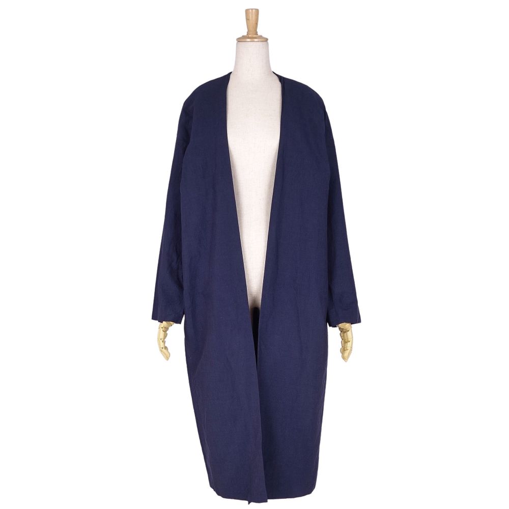 エンフォルド ENFOLD コート ロングコート ガウンコート コットン リネン アウター レディース ネイビー サイズ36(S相当)