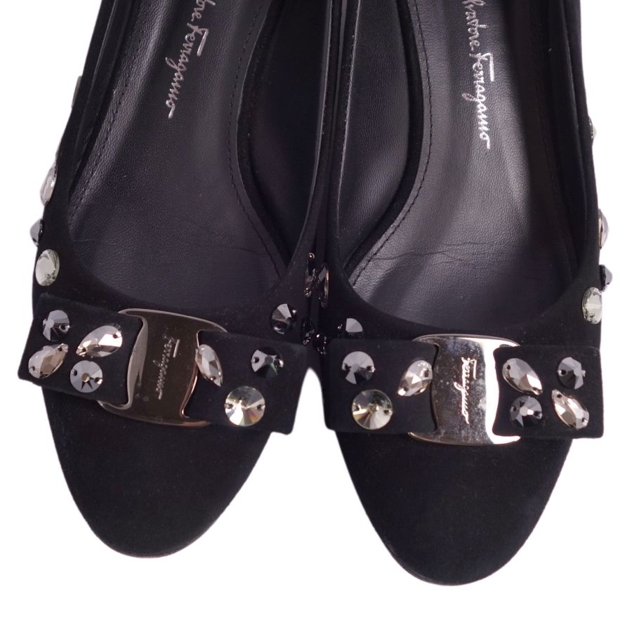 サルヴァトーレ フェラガモ Salvatore Ferragamo パンプス ヴァラリボン ビジュー スウェードレザー ヒール シューズ 靴 レディース ブラック サイズ5.5D(23cm相当)