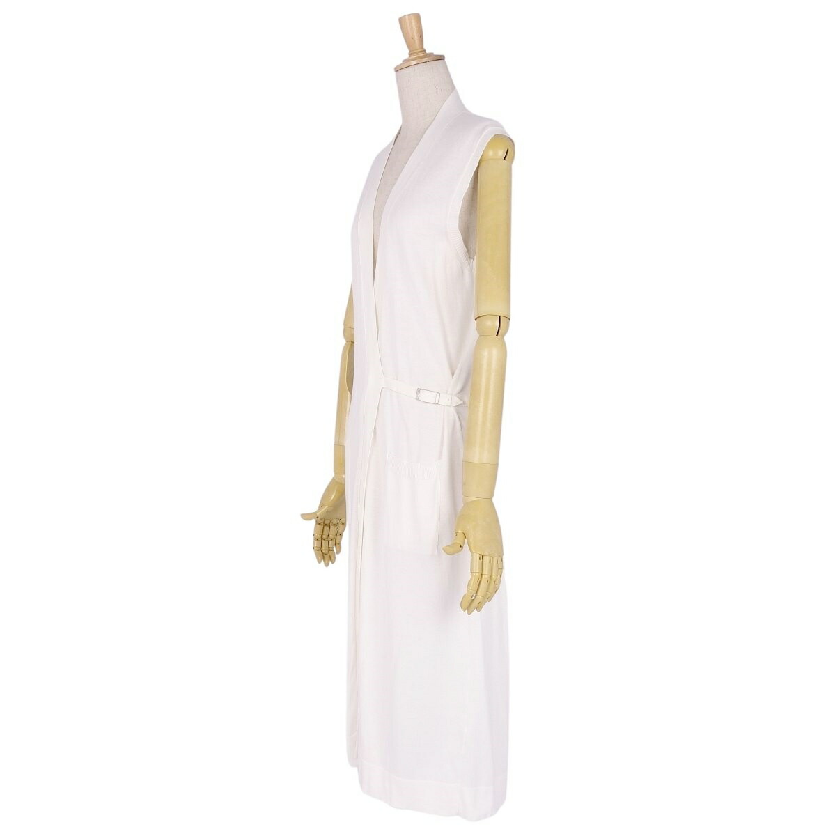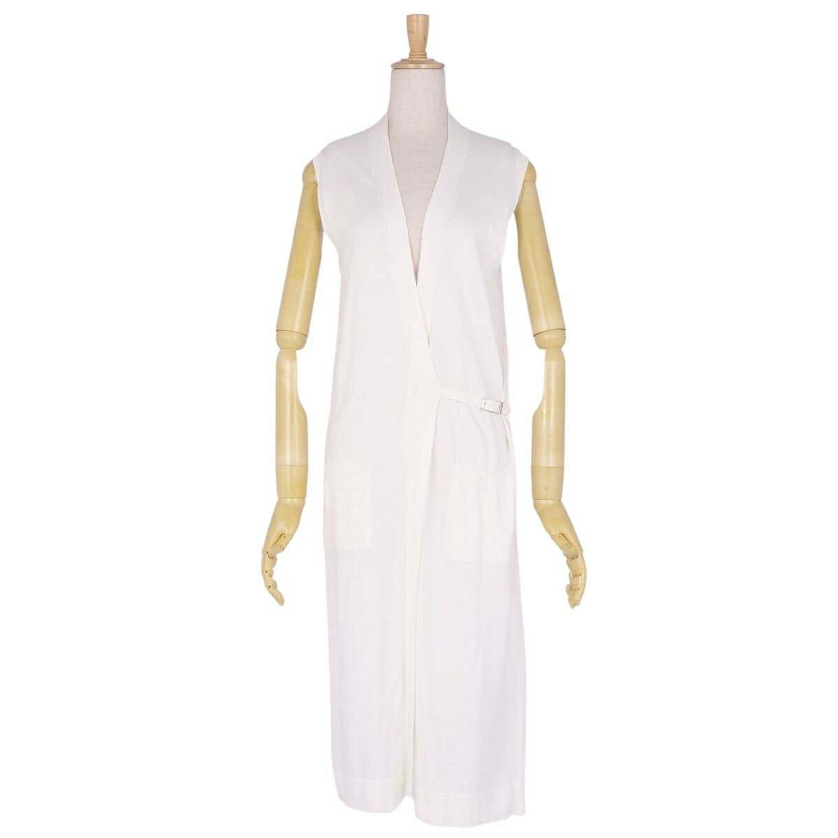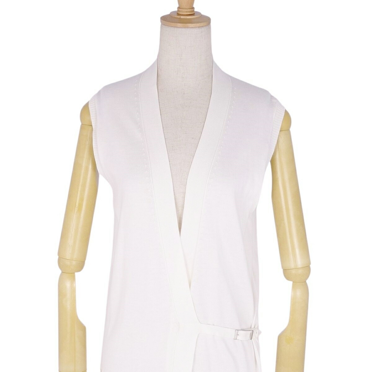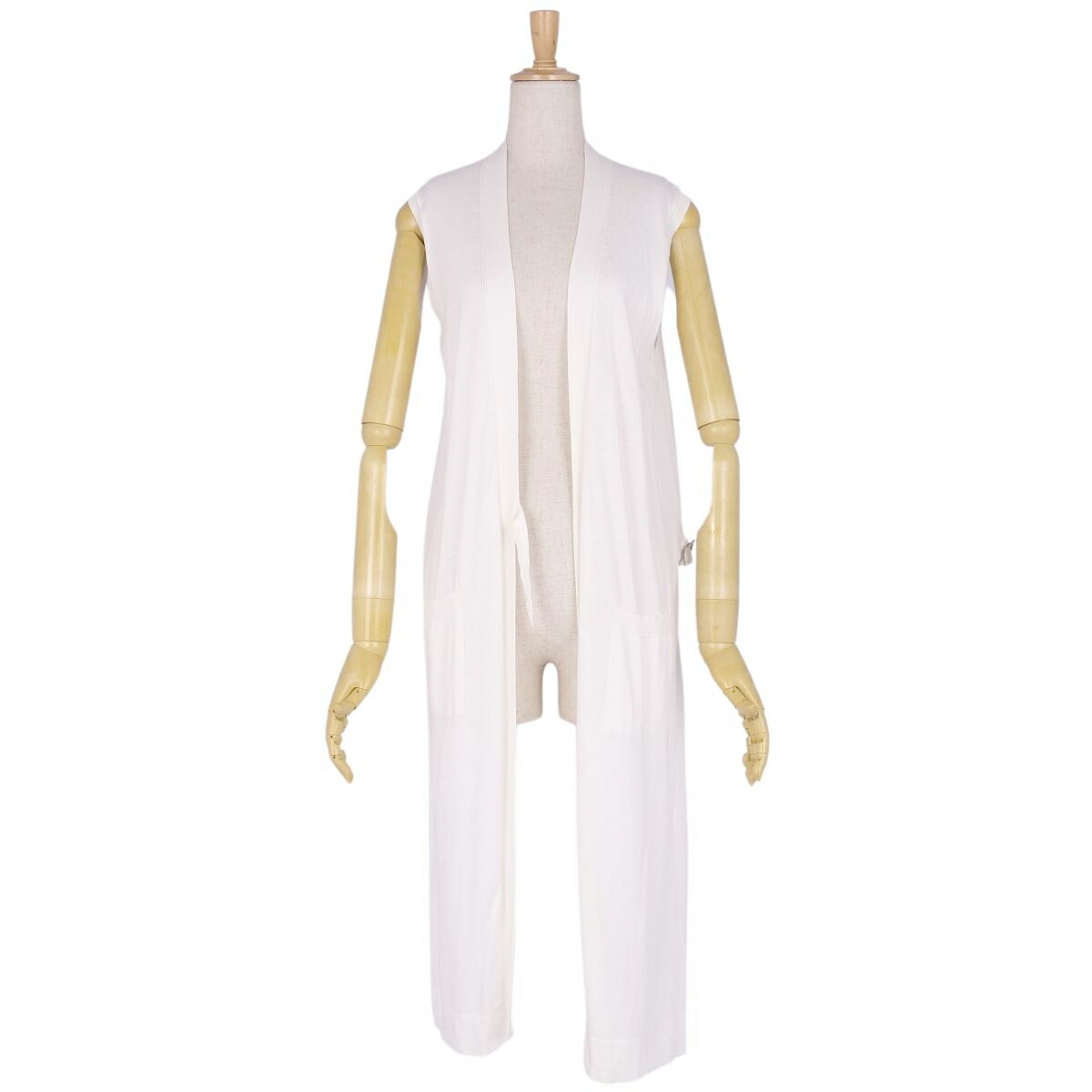 エルメス HERMES ニット カーディガン ベスト ロングジレ ノースリーブ 無地 コットン トップス レディース ホワイト サイズ40(M相当)