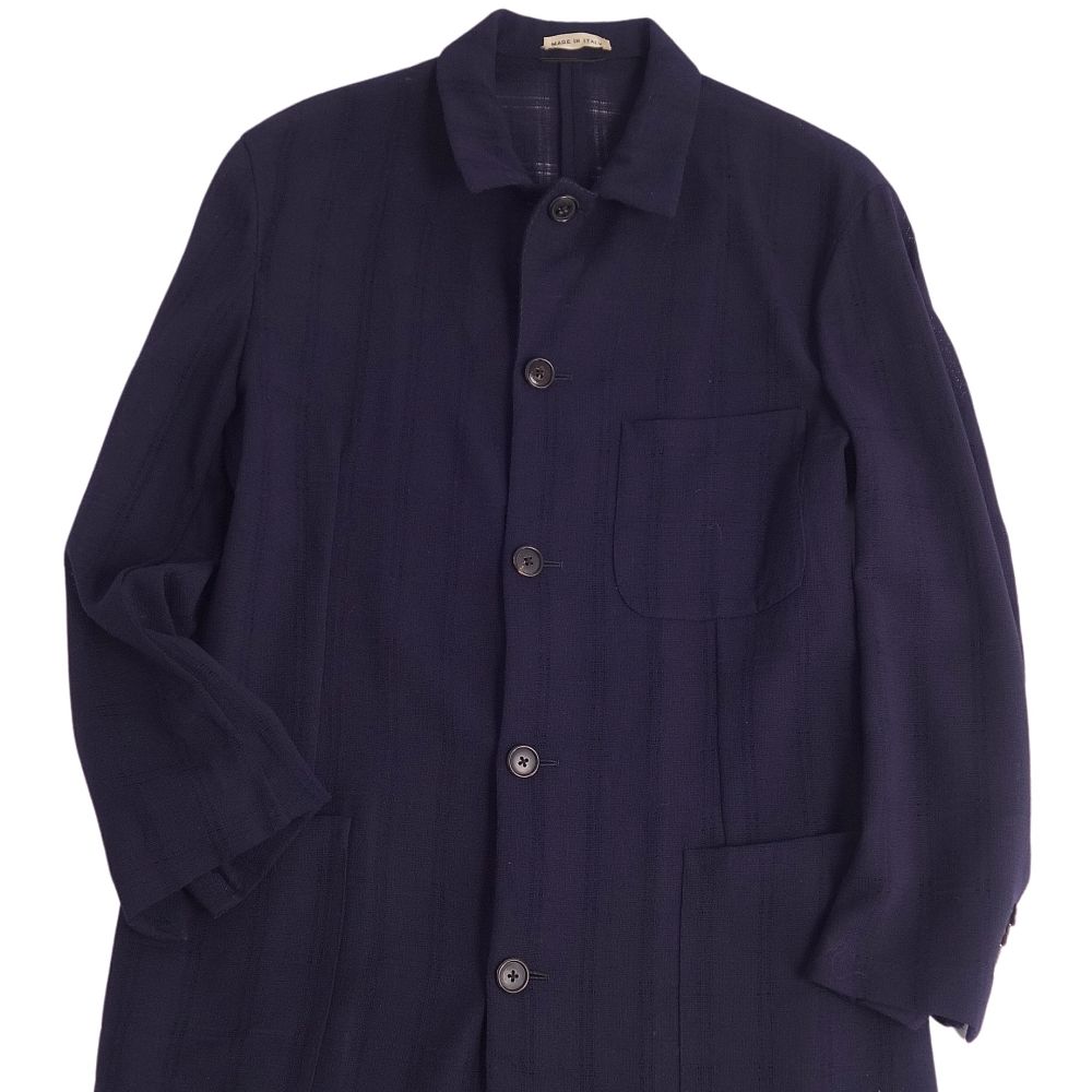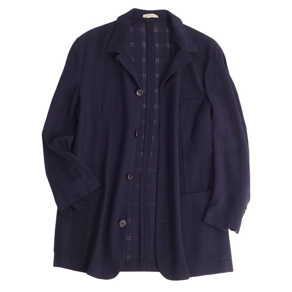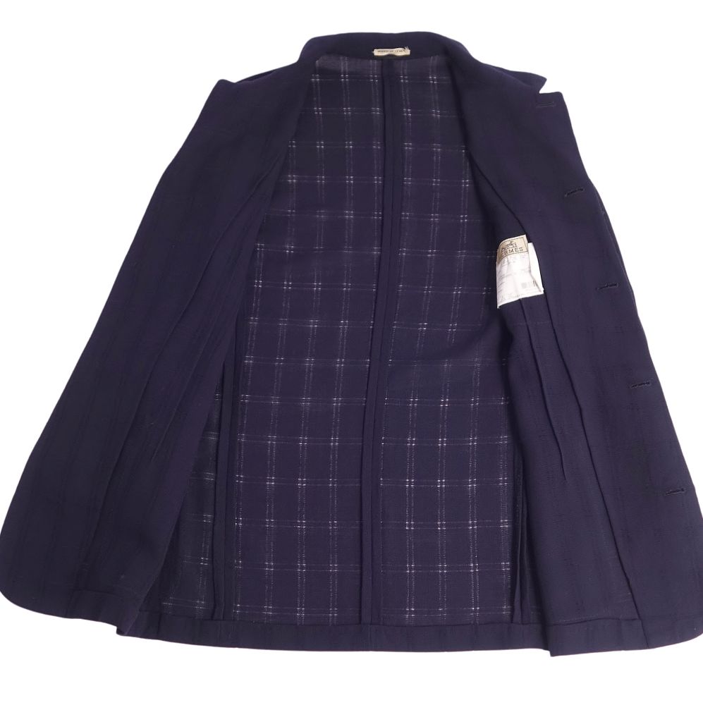 エルメス HERMES ジャケット チェック ウール アウター メンズ イタリア製 ネイビー サイズ46(S相当)