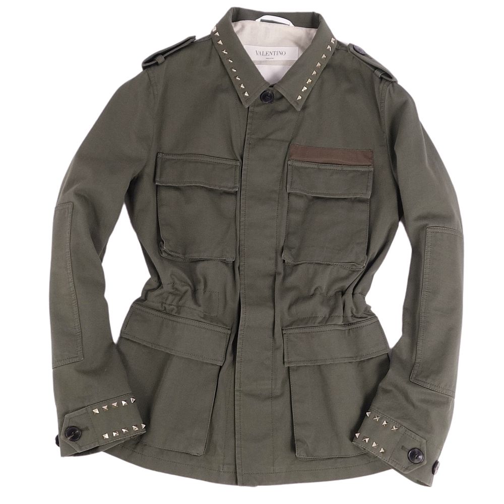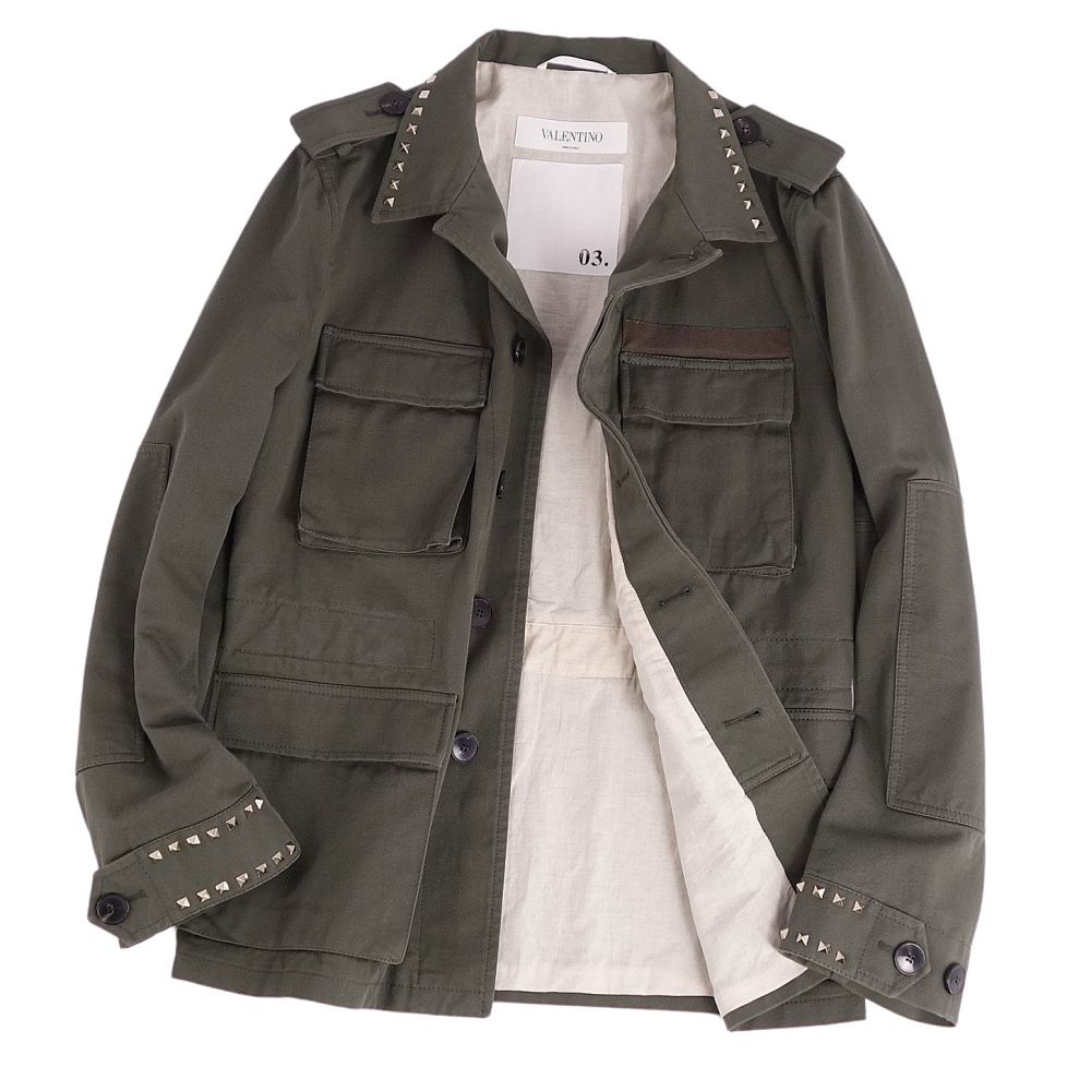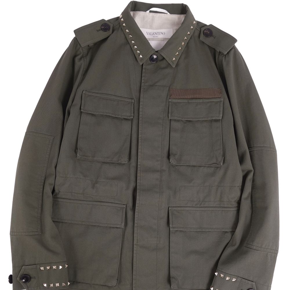 ヴァレンティノ VALENTINO ジャケット ロックスタッズ フィールドジャケット ミリタリー アウター メンズ カーキ サイズ48(M相当)