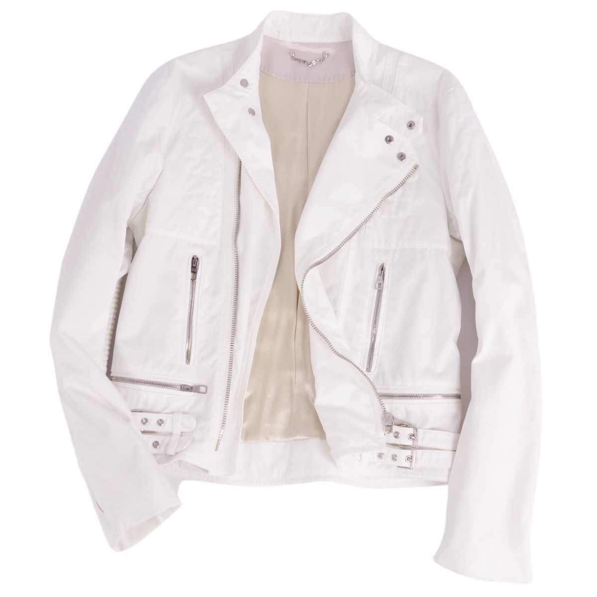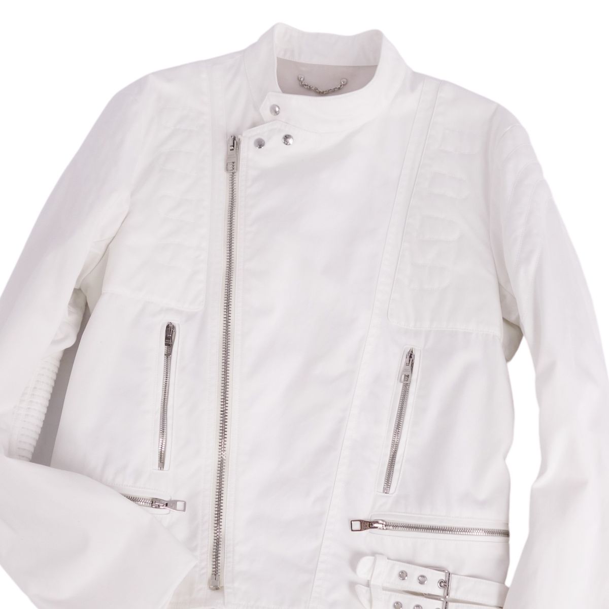 ルイヴィトン LOUIS VUITTON ジャケット バイカージャケット ダブルライダース 立ち襟 コットン アウター メンズ ホワイト サイズ50(M相当)