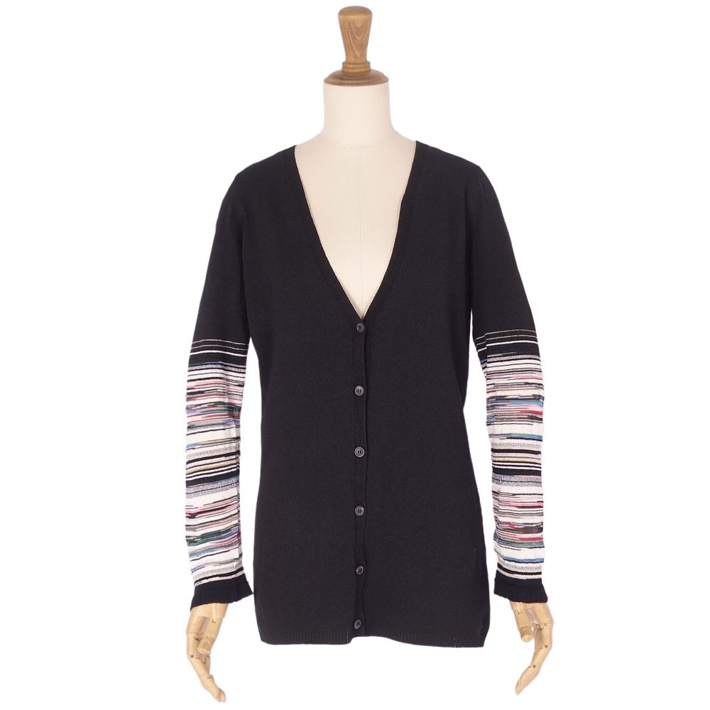 ミッソーニ MISSONI カーディガン ニット ボーダー ウール トップス レディース イタリア製 ブラック サイズ40(M相当)
