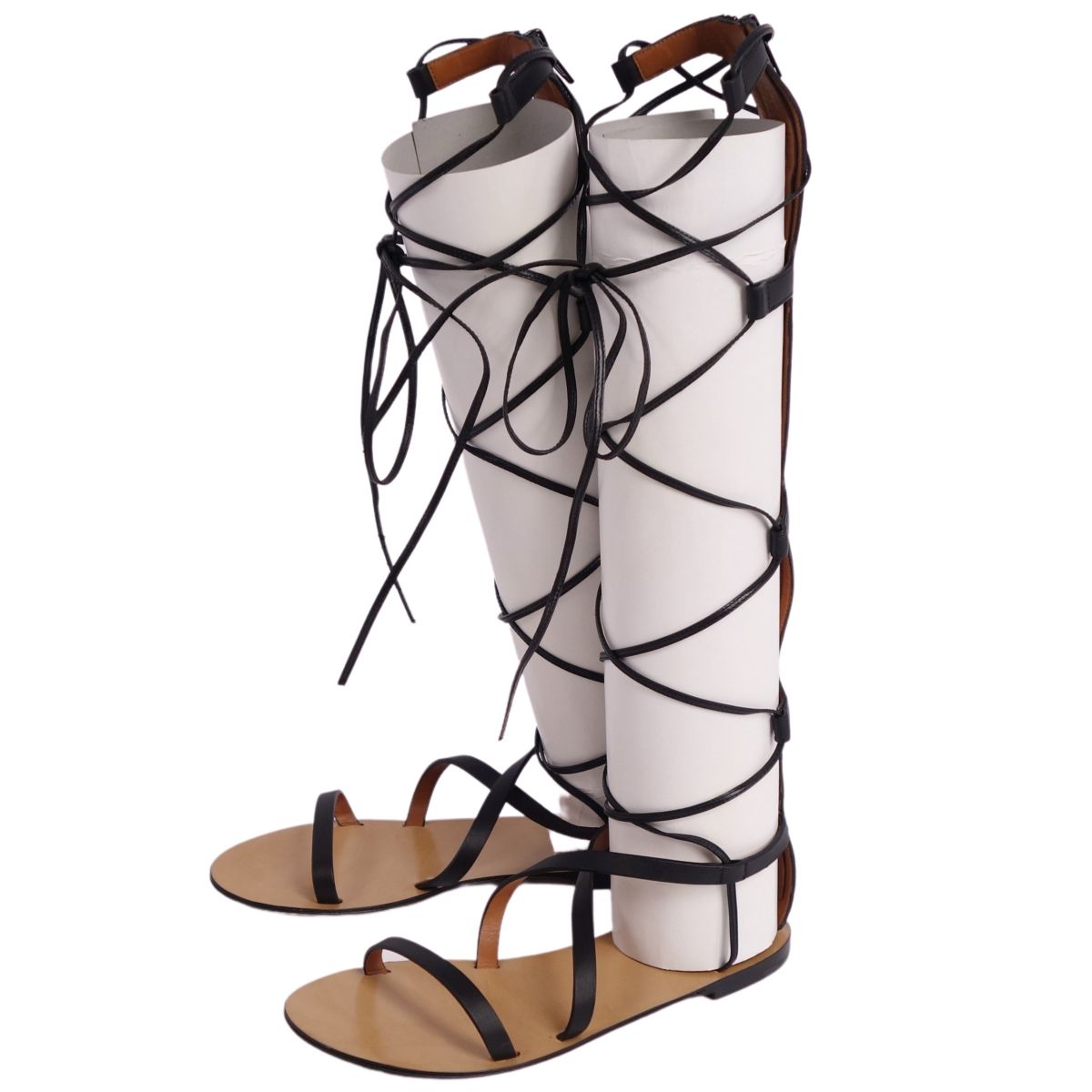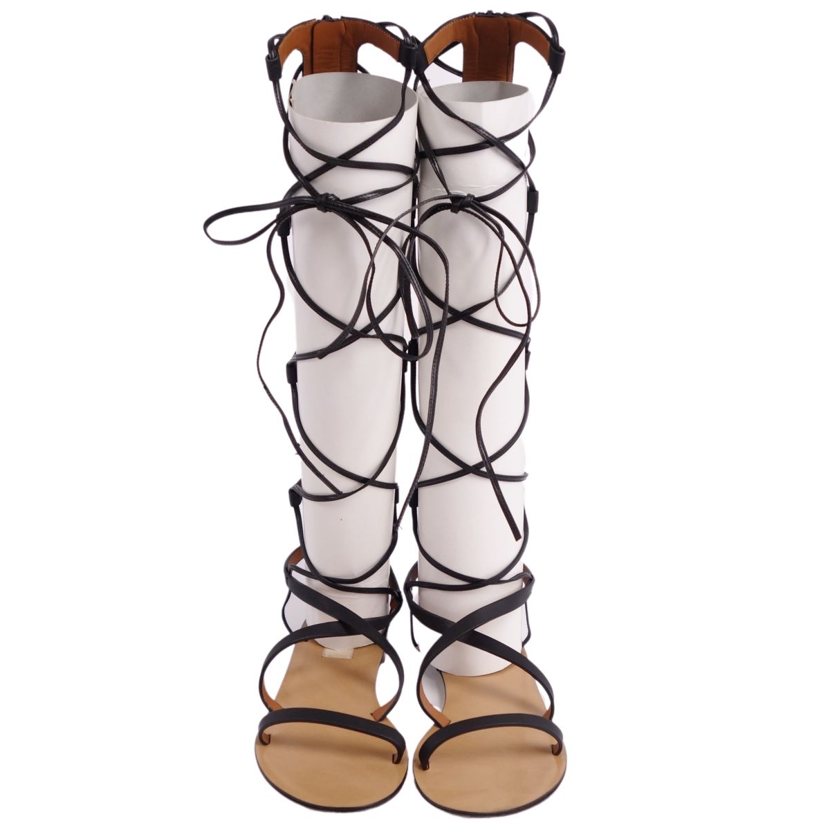 ヴァレンティノ ガラヴァーニ VALENTINO GARAVANI サンダル グラディエーターサンダル レースアップ カーフレザー シューズ レディース ブラック サイズ37.5(24.5cm相当)