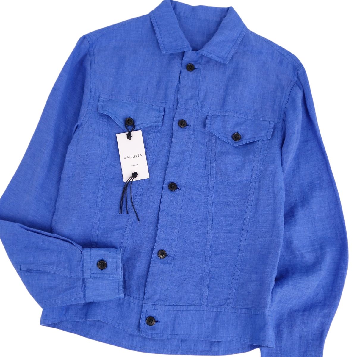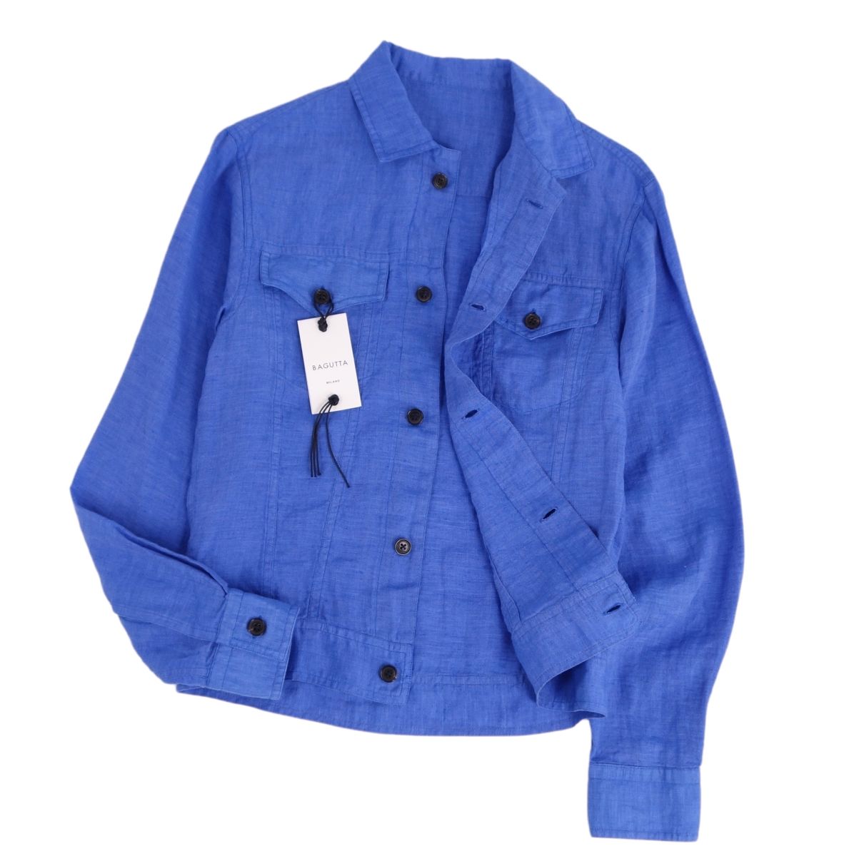 商品名 【新古品】バグッタ BAGUTTA シャツ ジャケット トラッカー ロングスリーブ 無地 リネン アウター メンズ XS ブルー【中古】