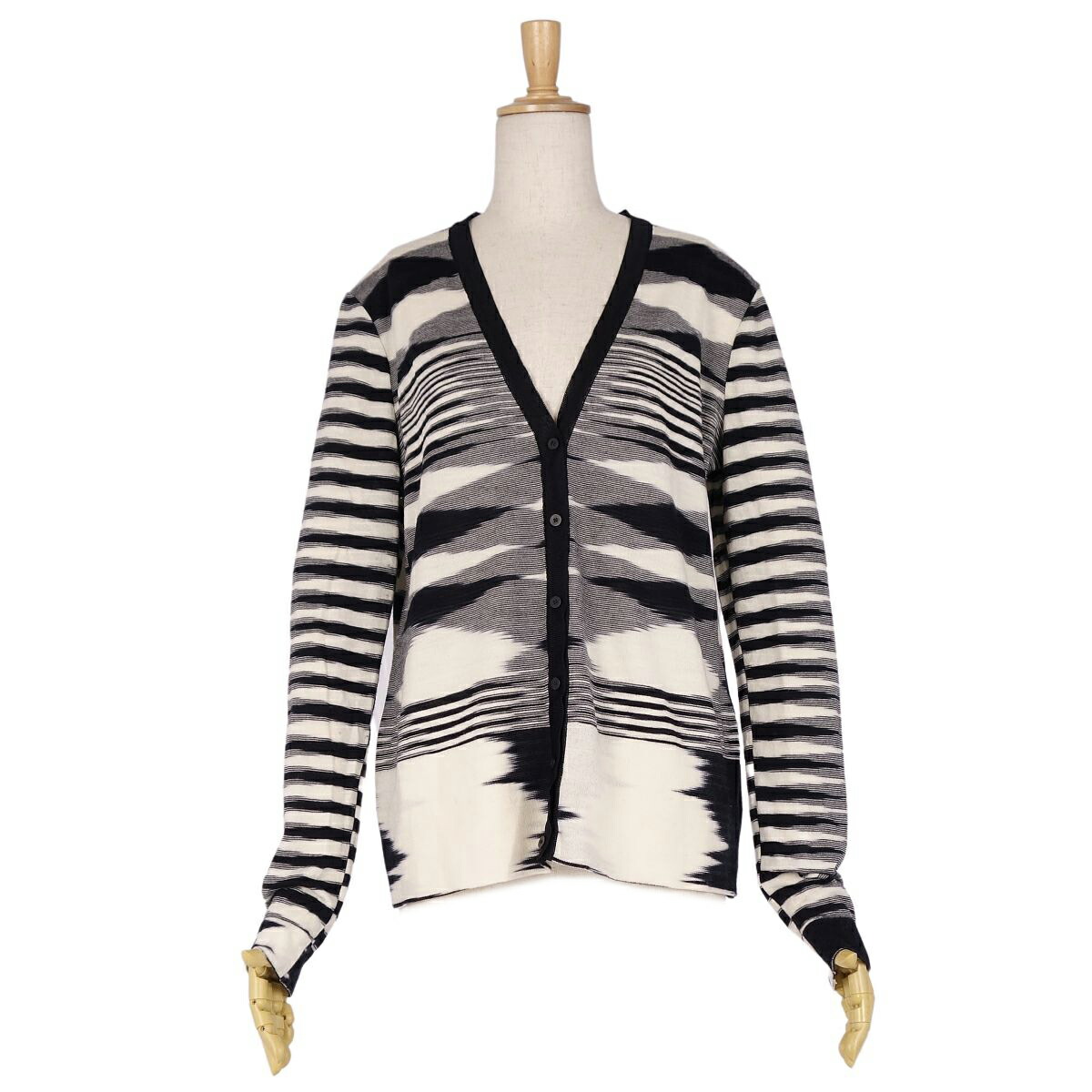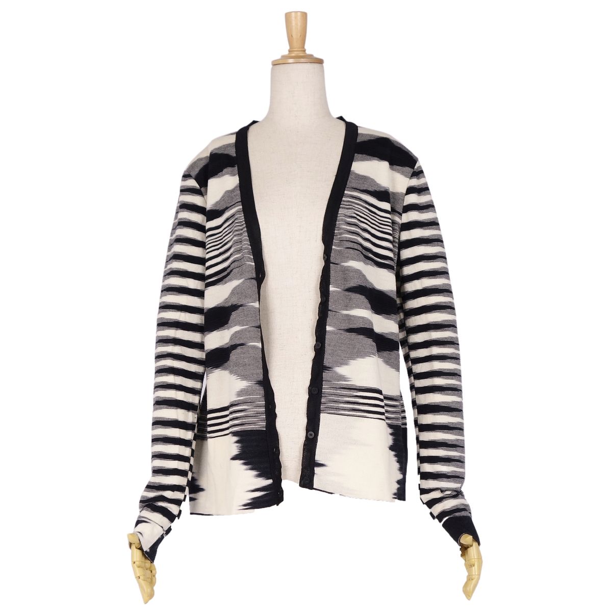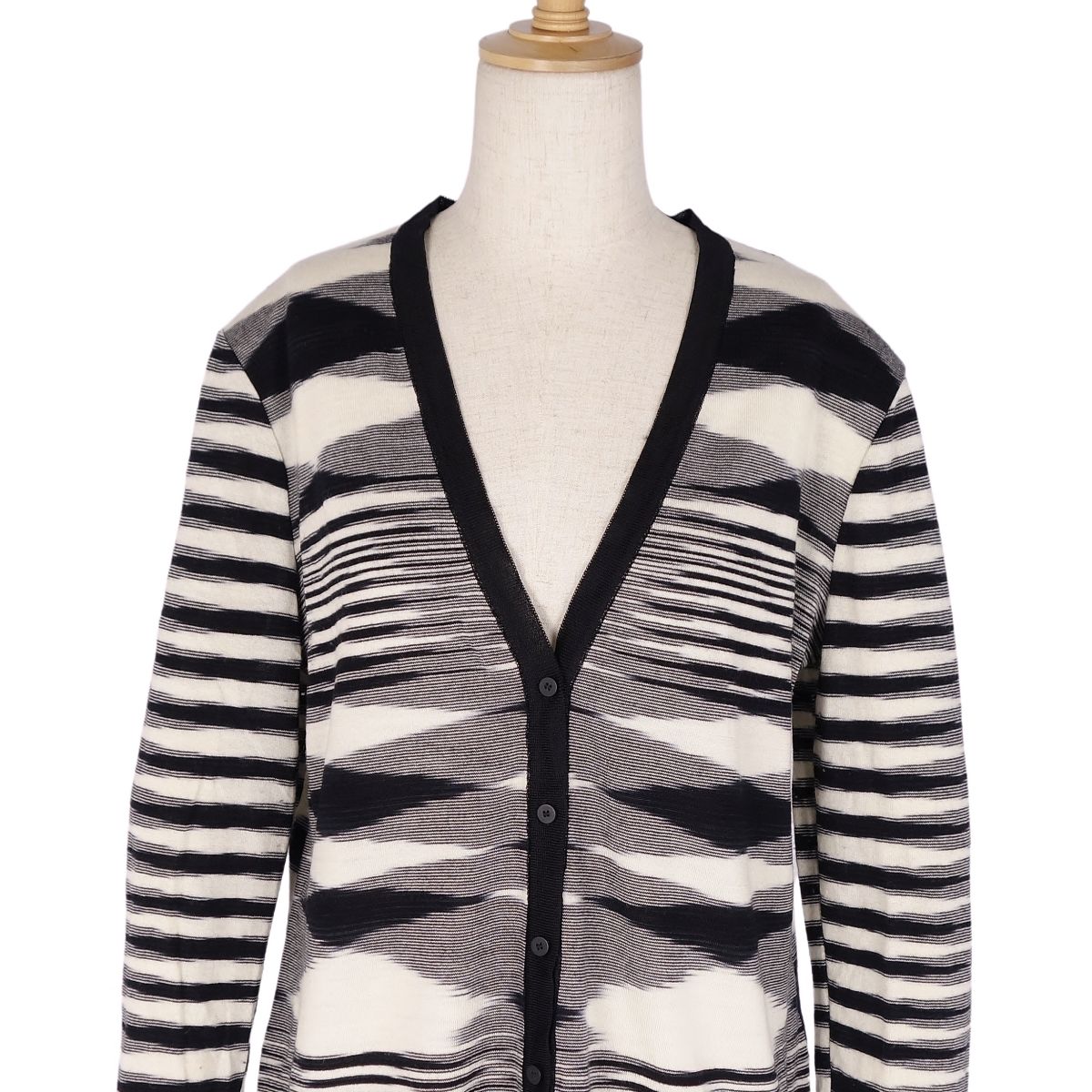 商品名 ミッソーニ MISSONI ニット カーディガン ロングスリーブ ゼブラ柄 ウール トップス レディース 44(L相当) ブラック/ホワイト【中古】