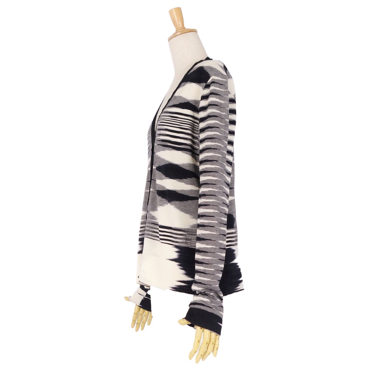 ミッソーニ MISSONI ニット カーディガン ロングスリーブ ゼブラ柄 ウール トップス レディース ブラック/ホワイト サイズ44(L相当)
