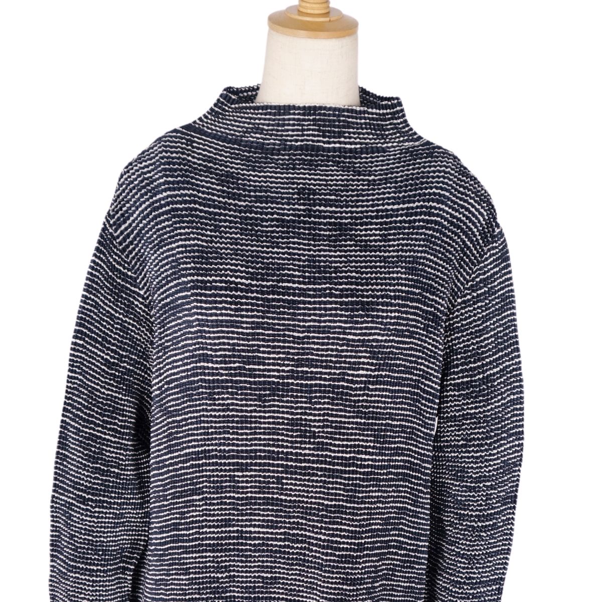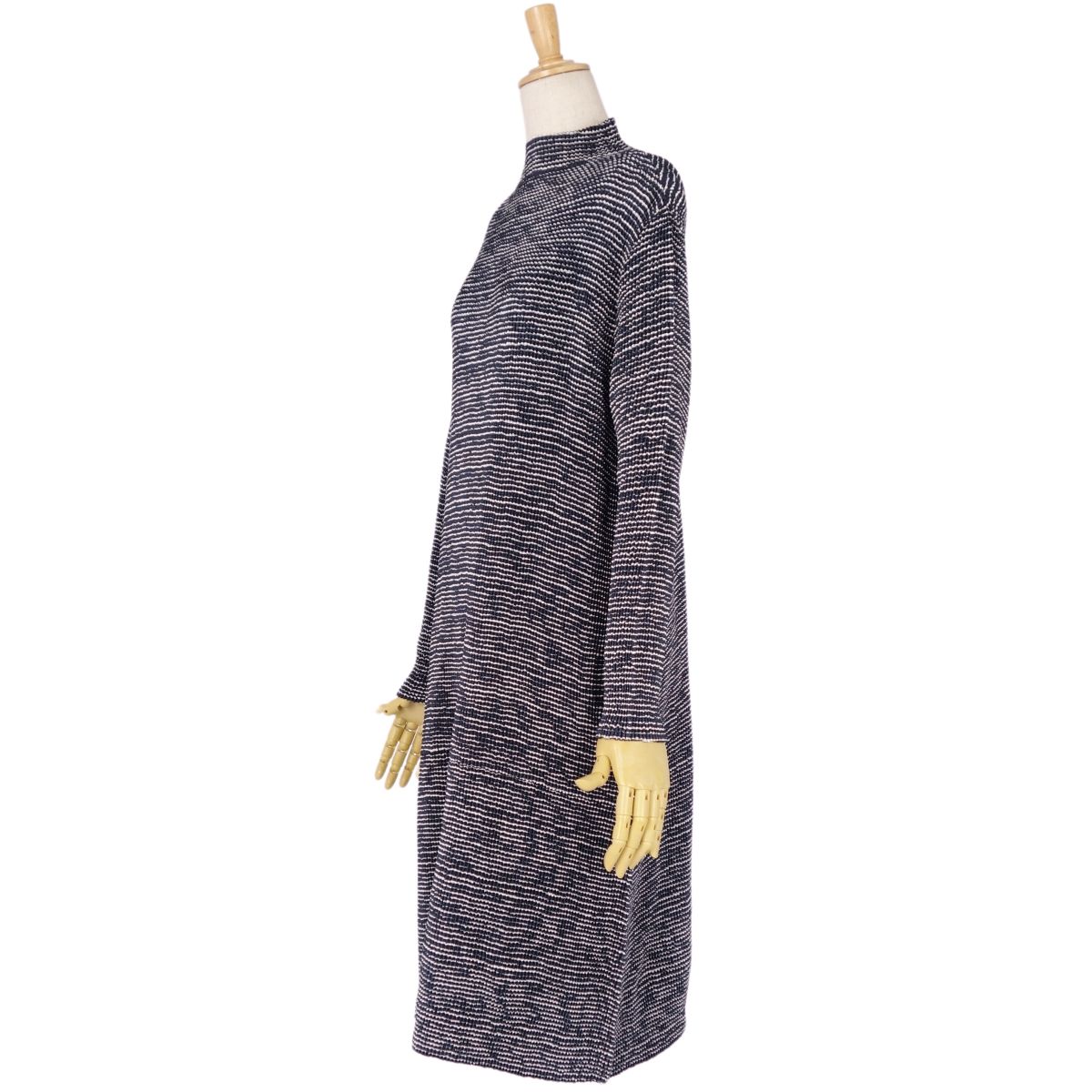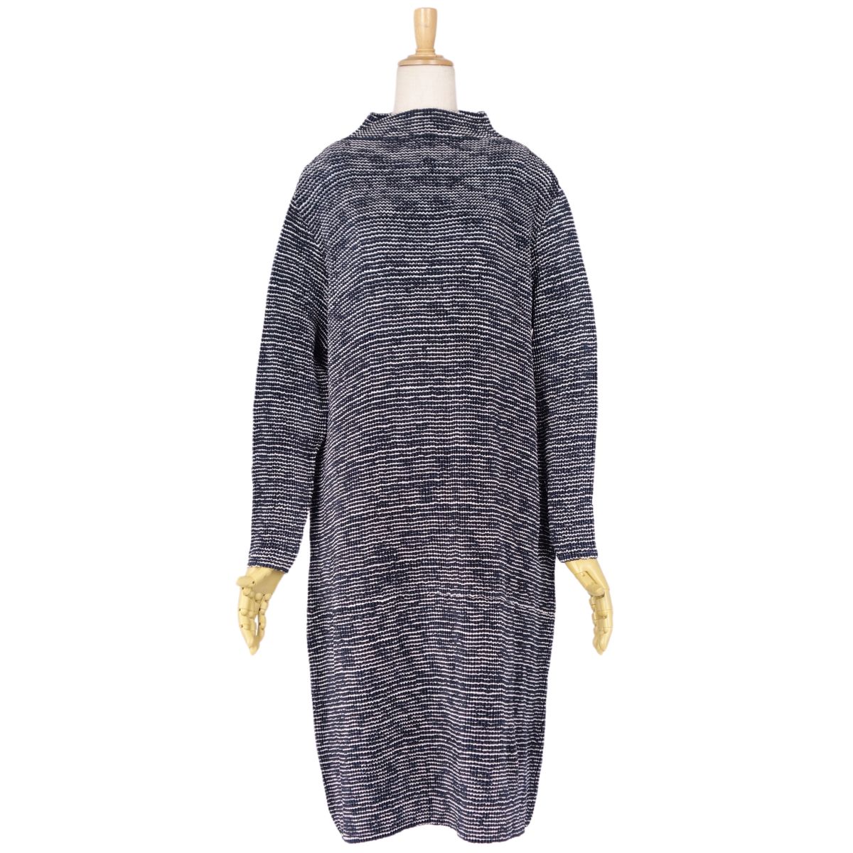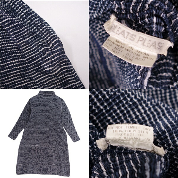 プリーツプリーズ イッセイミヤケ PLEATS PLEASE ワンピース ロングスリーブ プリーツ トップス レディース ネイビー/ホワイト サイズM相当(表記無し)
