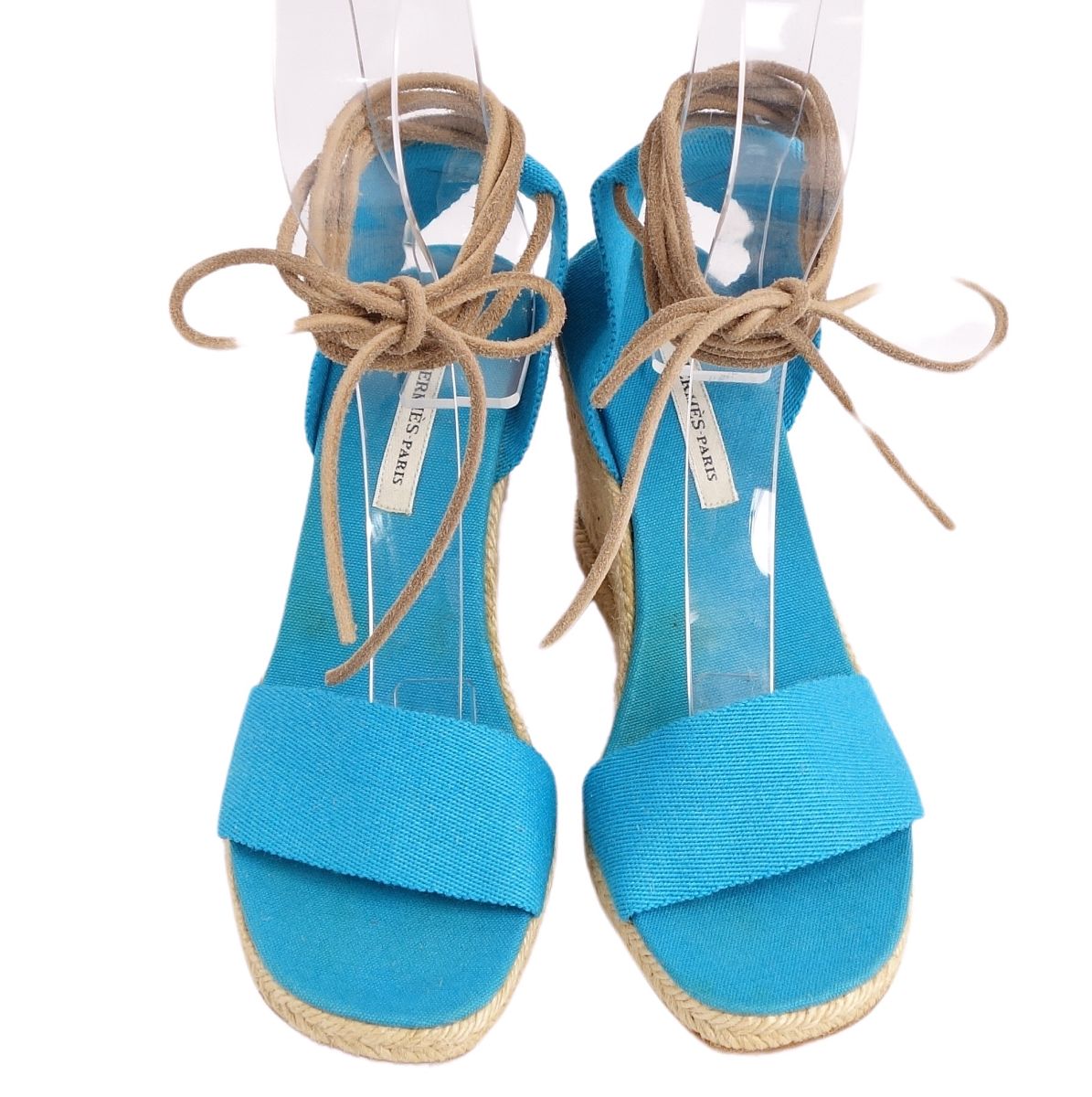 | 商品名 | エルメス HERMES サンダル ウェッジソール レースアップ キャンバス ストロー シューズ レディース 35(22cm相当) ブルー【中古】 |