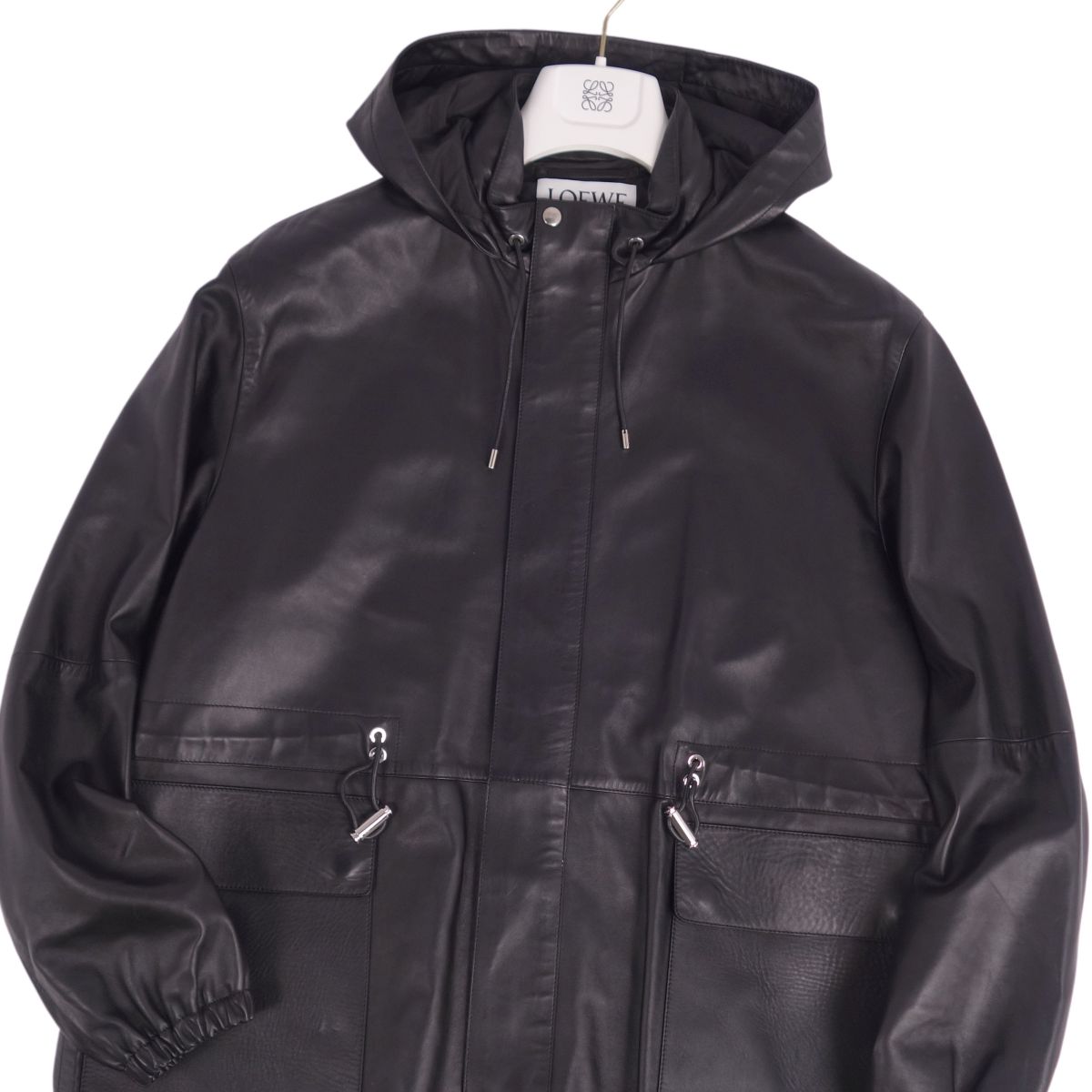 ロエベ LOEWE コート レザーコート フーディー ジップアップ アナグラム ラムレザー アウター メンズ ブラック サイズ46(S相当)