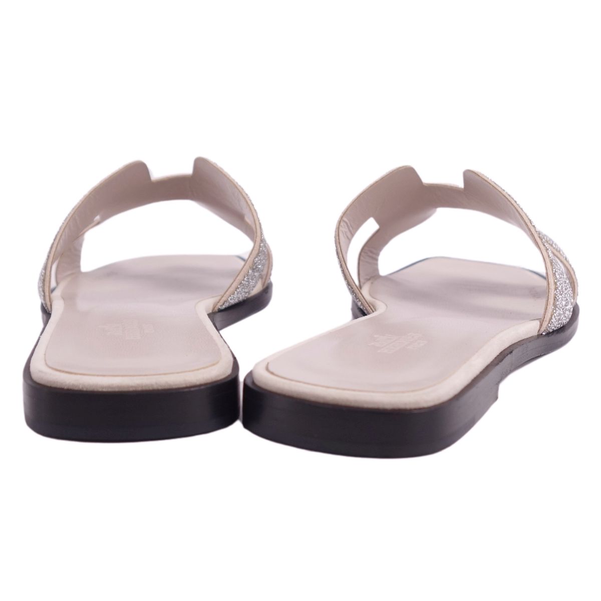 エルメス HERMES サンダル ミュール フラット オラン Hロゴ グリッター シューズ レディース ピンクベージュ サイズ37.5(24.5cm相当)