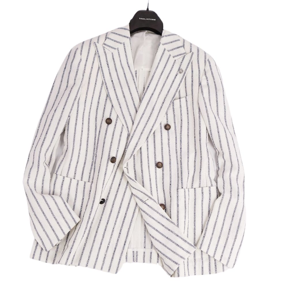 タリアトーレ TAGLIATORE ジャケット ダブルブレスト ストライプ コットン リネン アウター メンズ ホワイト/ネイビー サイズ48/7R(M相当)