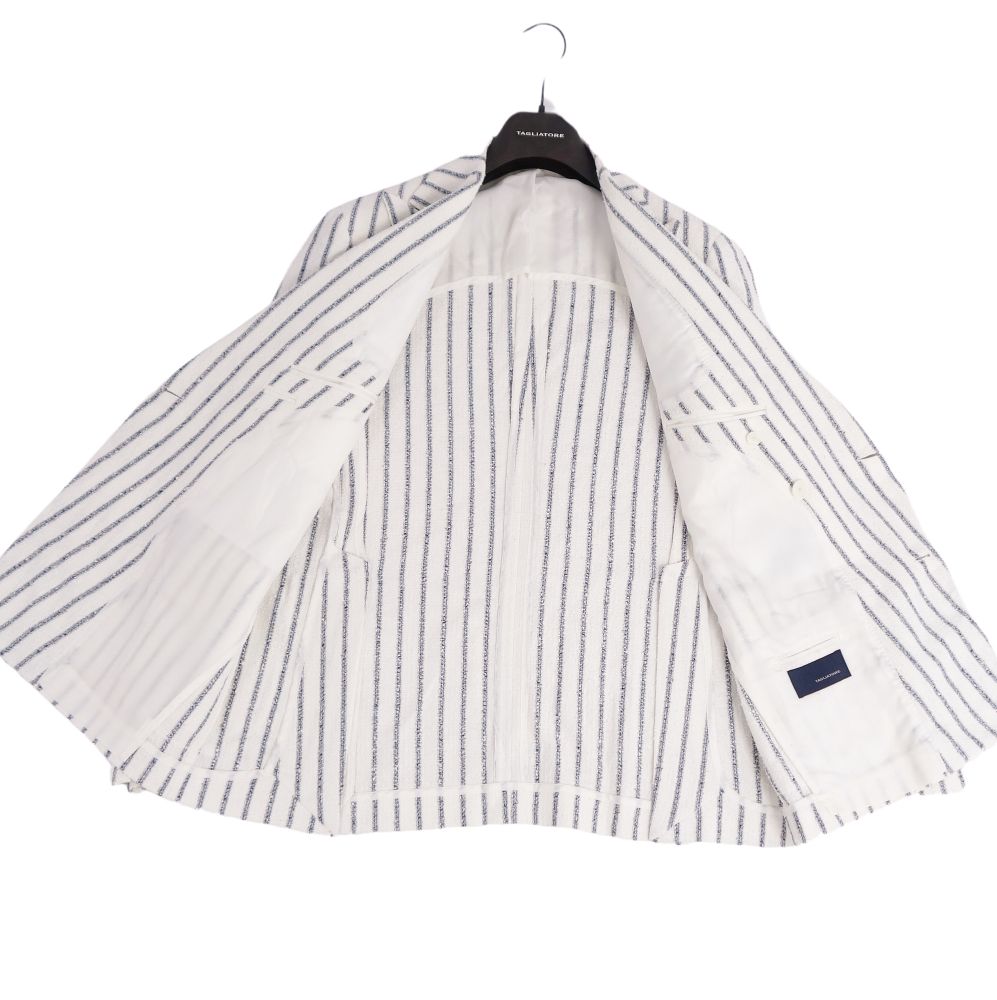 商品名 【美品】タリアトーレ TAGLIATORE ジャケット ダブルブレスト ストライプ コットン リネン アウター メンズ 48/7R(M相当) ホワイト/ネイビー【中古】