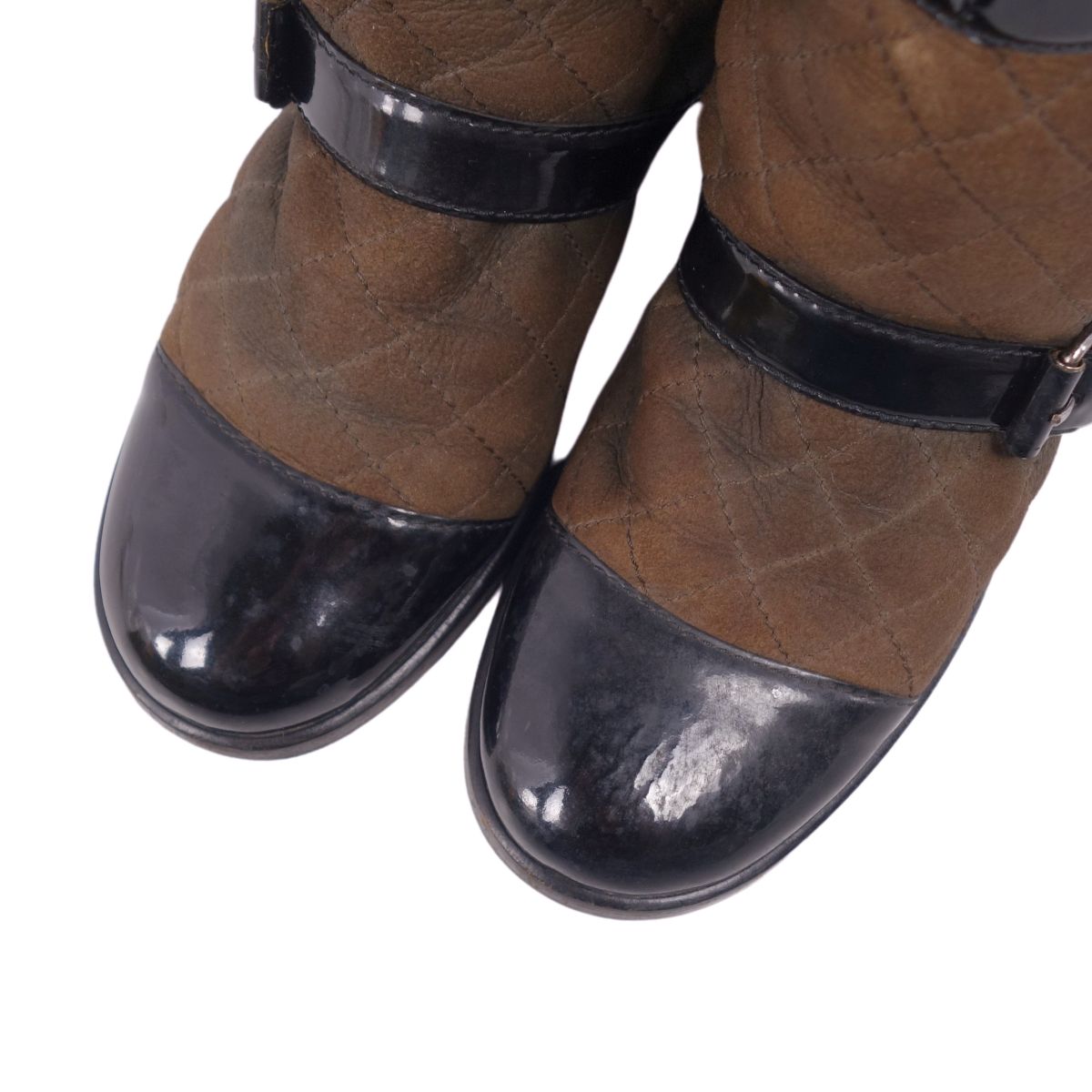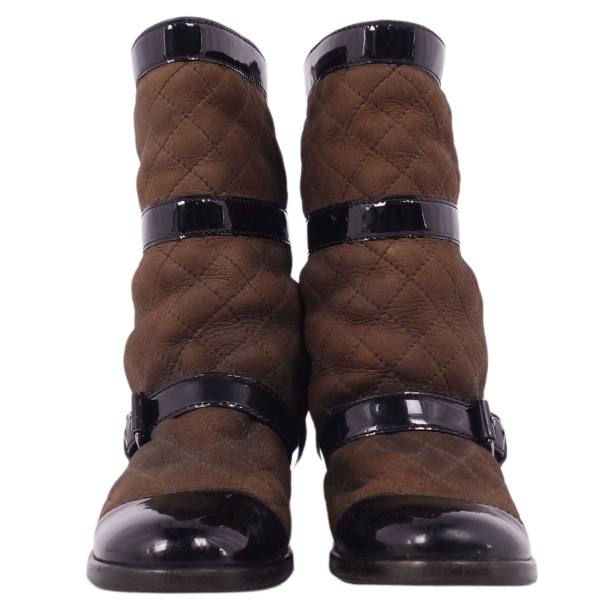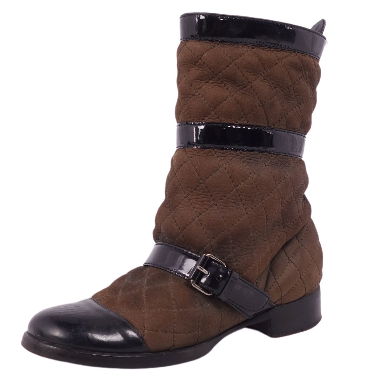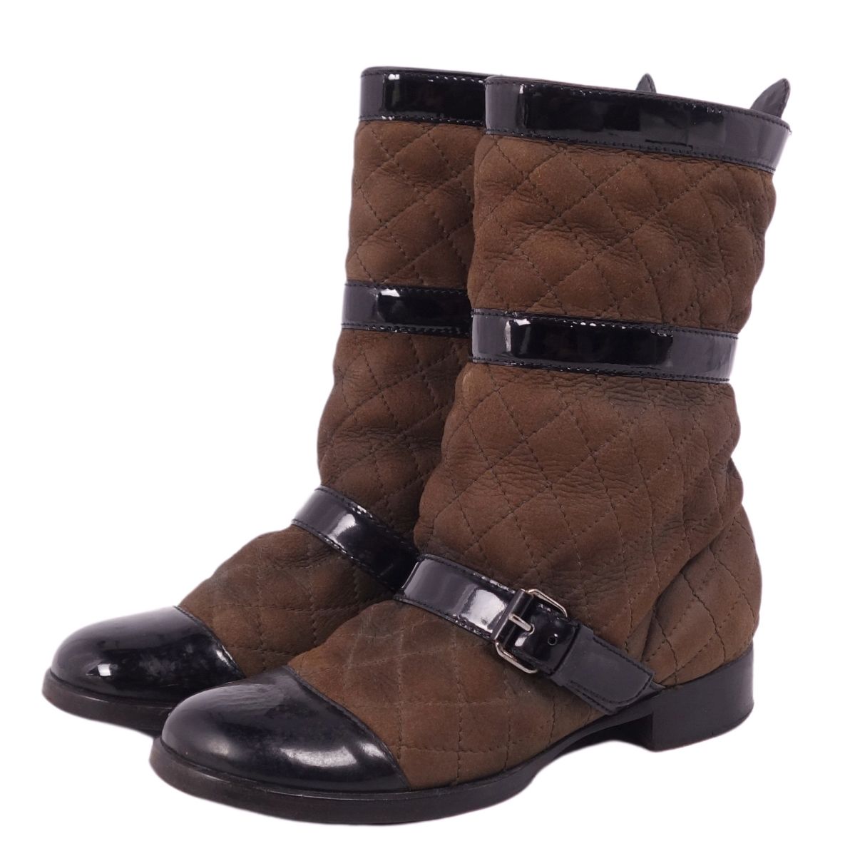 シャネル CHANEL ブーツ ショートブーツ ムートンブーツ ココマーク マトラッセ 内ボア シューズ レディース ブラウン/ブラック サイズ37.5C