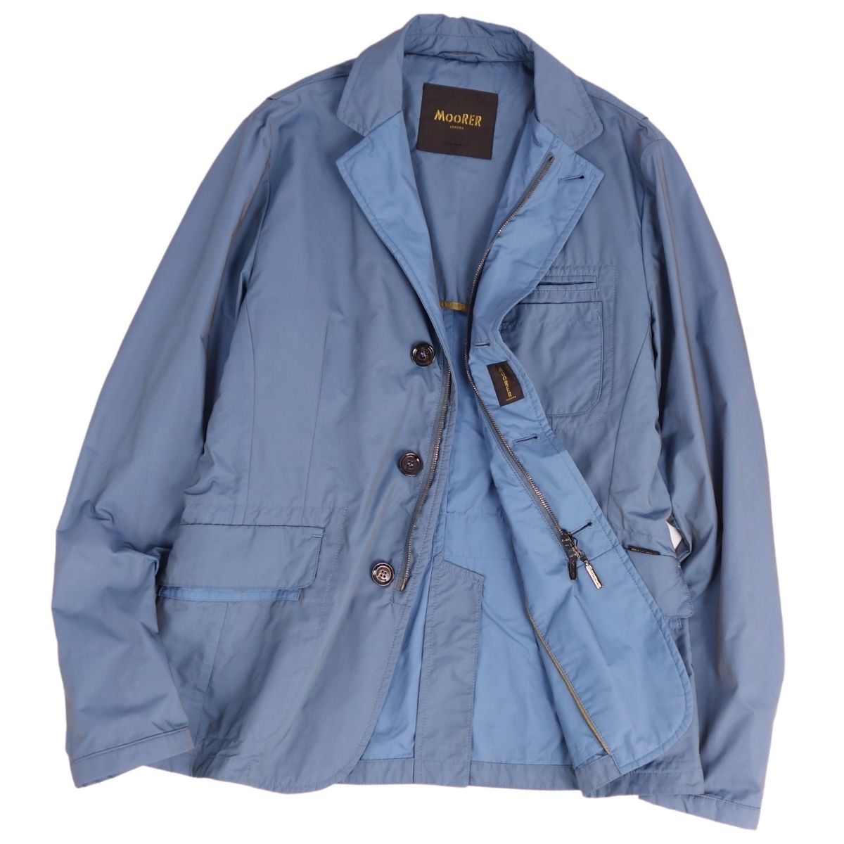 ムーレー MooRER ジャケット ブルゾン ワークジャケット ジップアップ 無地 アウター メンズ ブルー サイズ46(S相当)