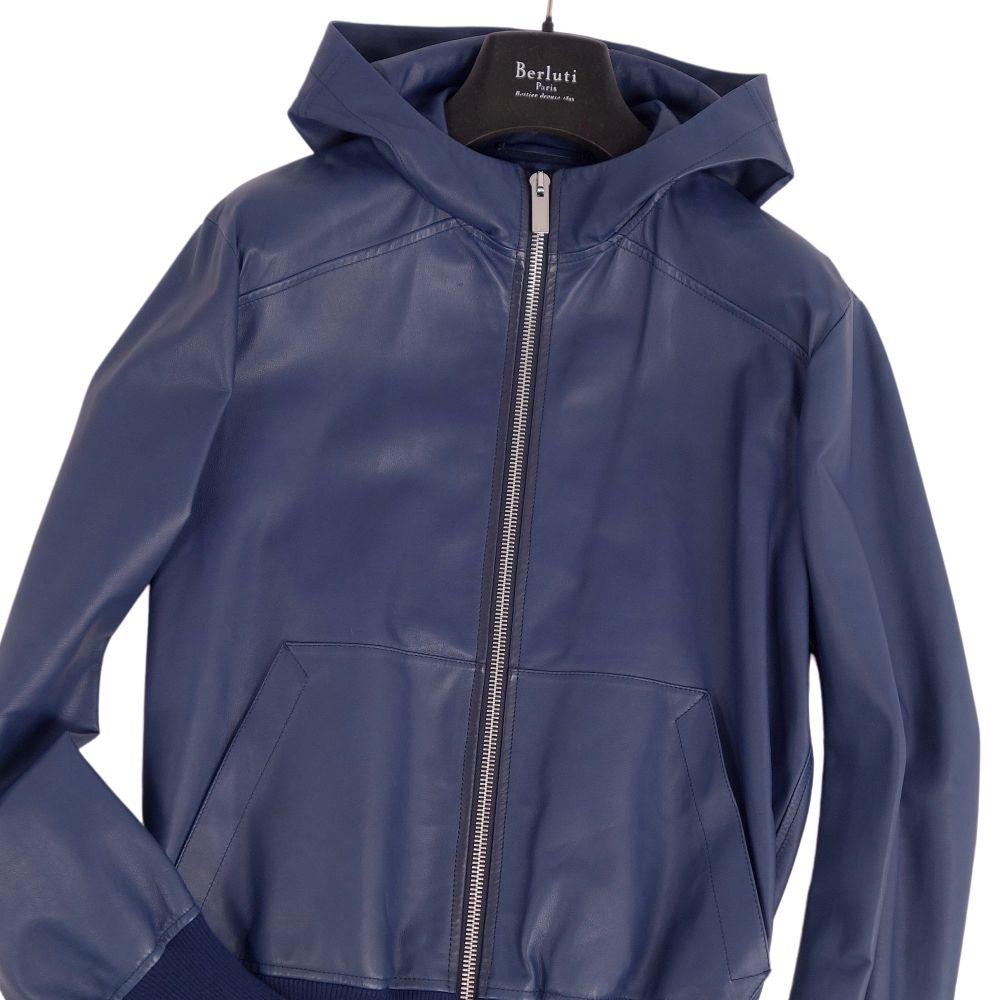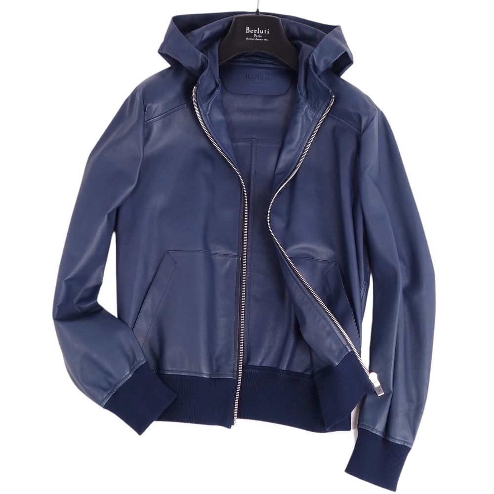 ベルルッティ Berluti ジャケット フード付き レザージャケット カーフスキン アウター メンズ ネイビー サイズ46(M相当)