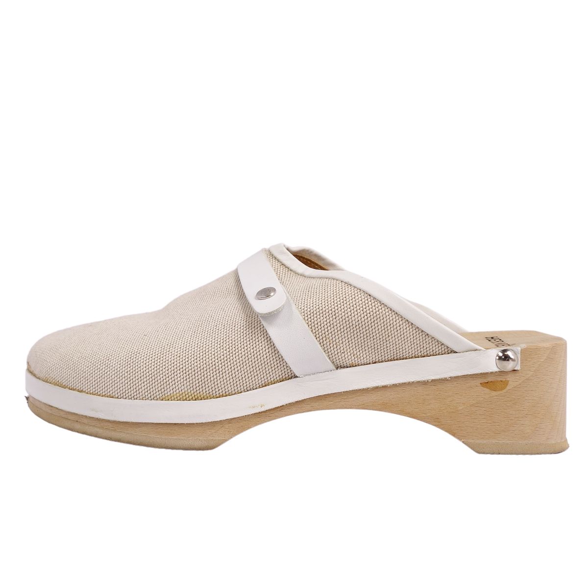 エルメス HERMES サンダル ミュール キャンバス ウッドソール セリエボタン シューズ レディース ベージュ サイズ37(24cm相当)