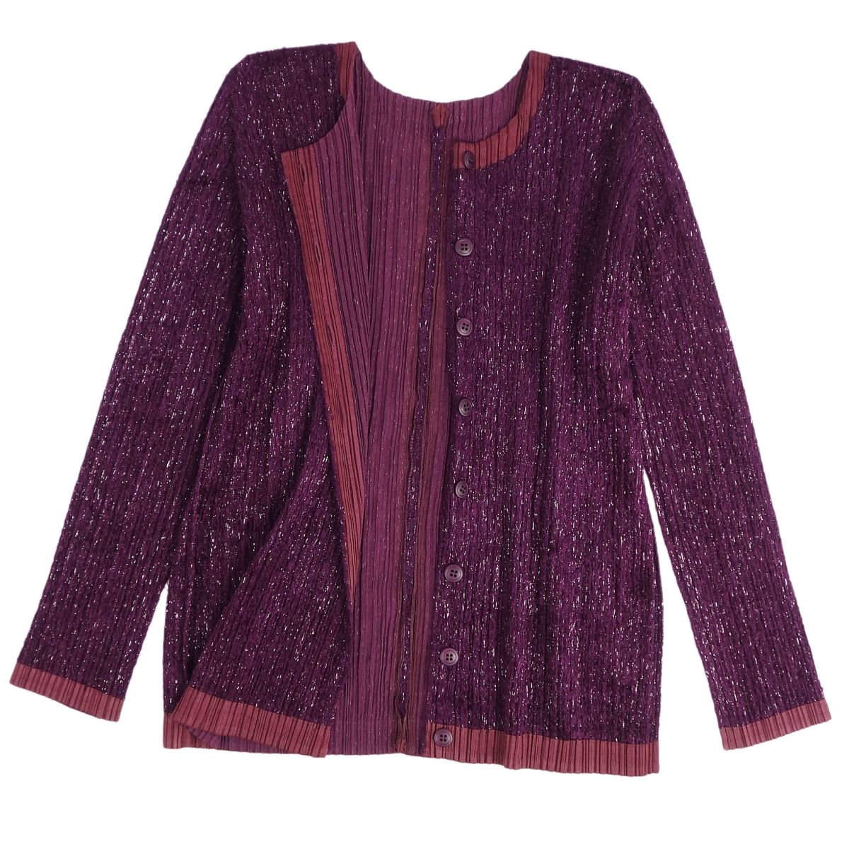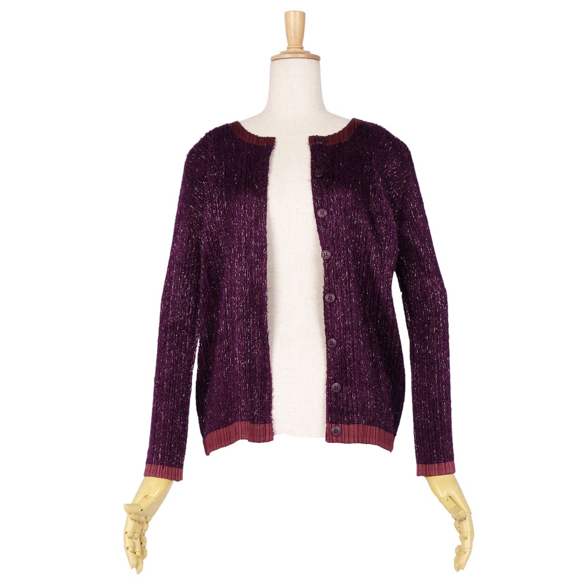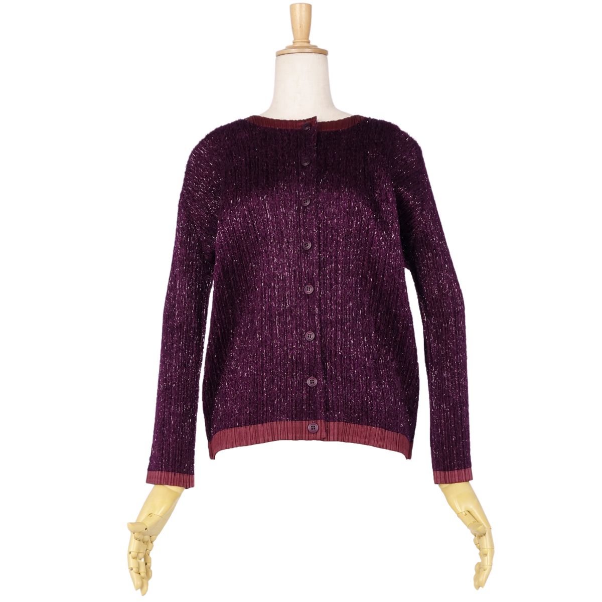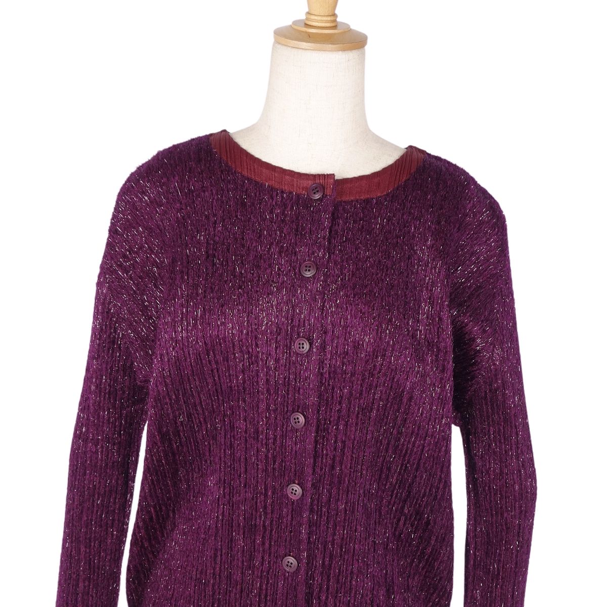 プリーツプリーズ イッセイミヤケ PLEATS PLEASE カーディガン ロングスリーブ プリーツ トップス レディース パープル サイズ3(L相当)